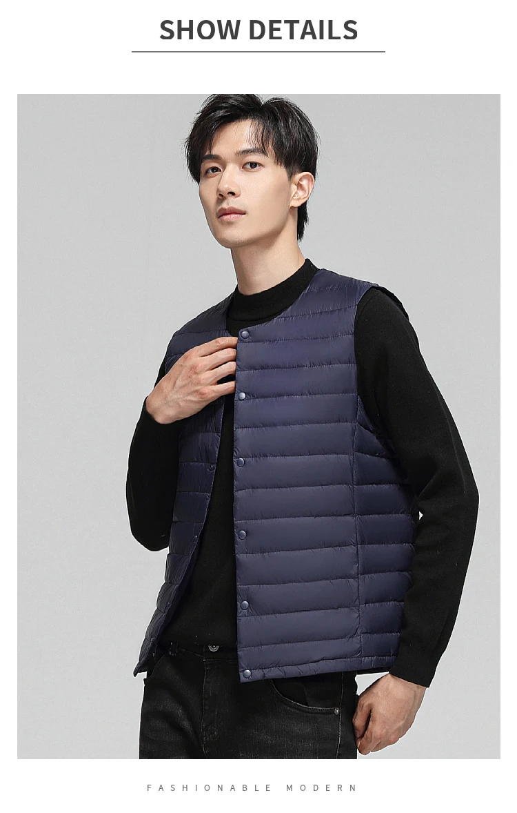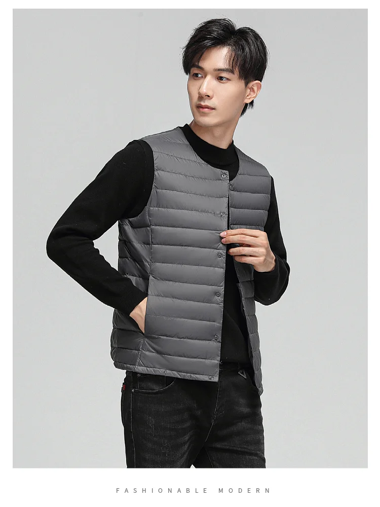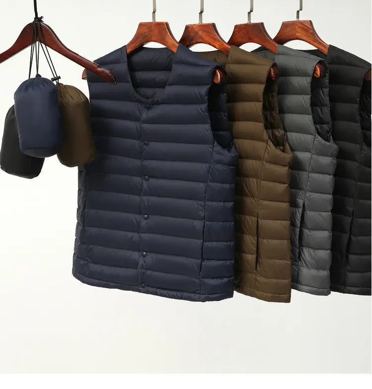0-10℃ Men Waistcoats 2024 New Autumn Winter Sleeveless Duck Down Jackets Puffer Portable Outdoor Trip Windproof Vest Coats