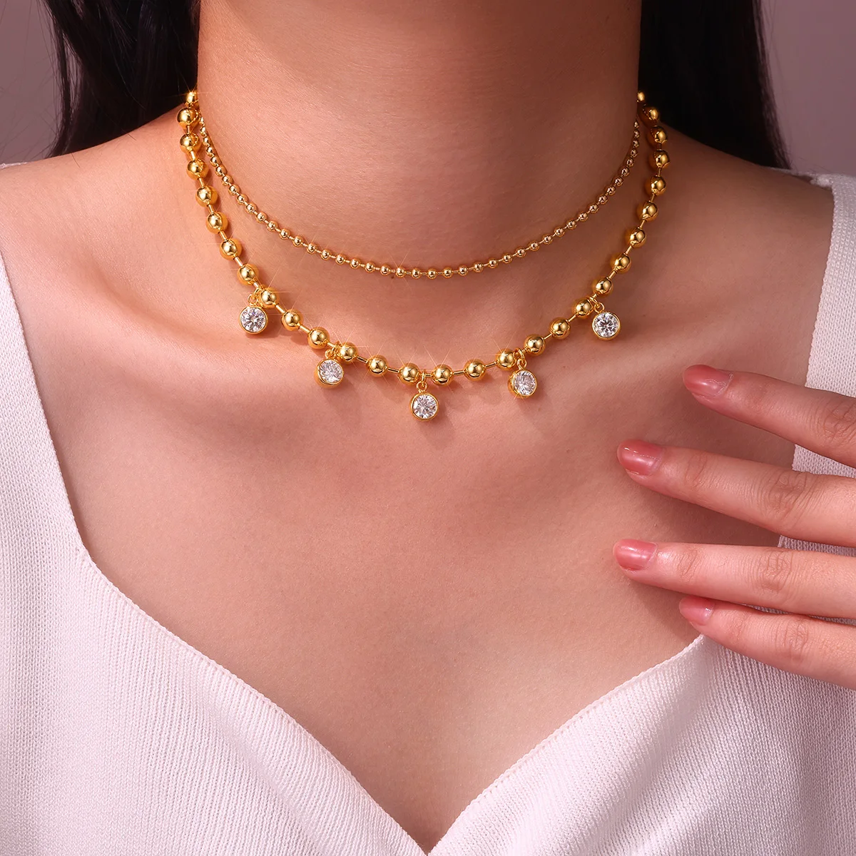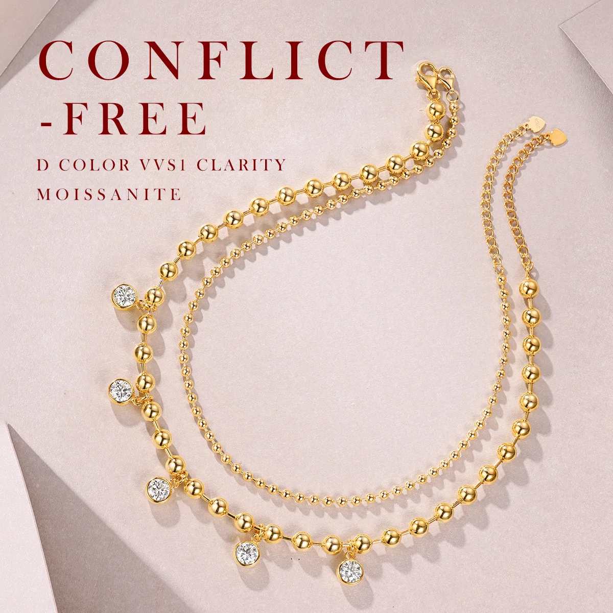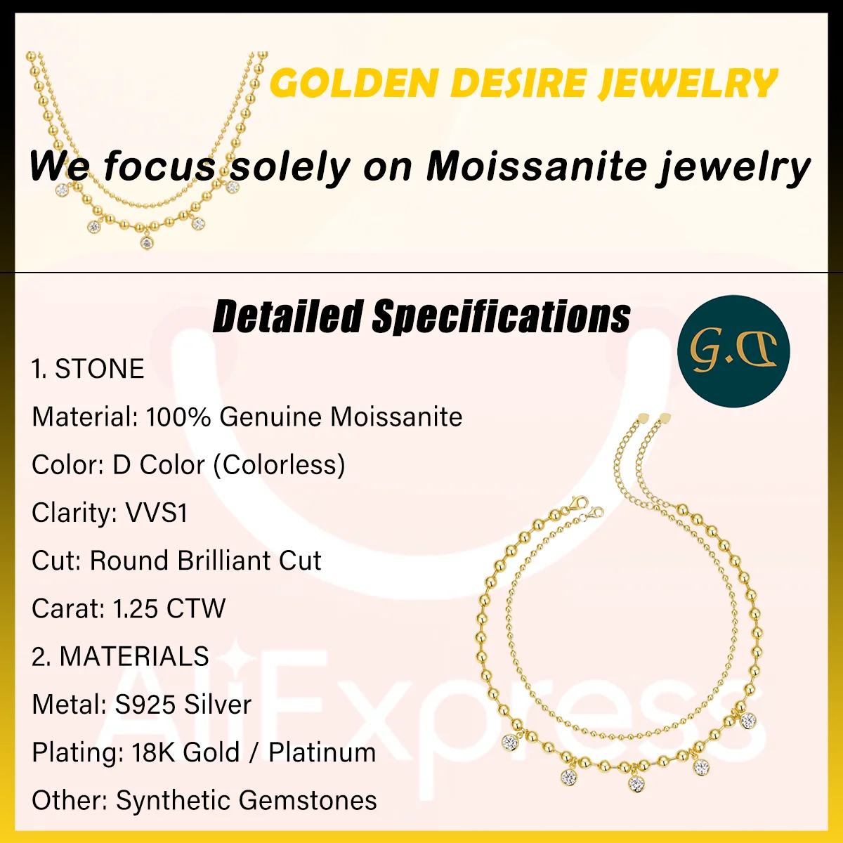 1.25 CTW Moissanite Necklace for Woman Double Layer Beaded Design 925 Silver 18K Gold Plated Minimalist Layered Jewelry