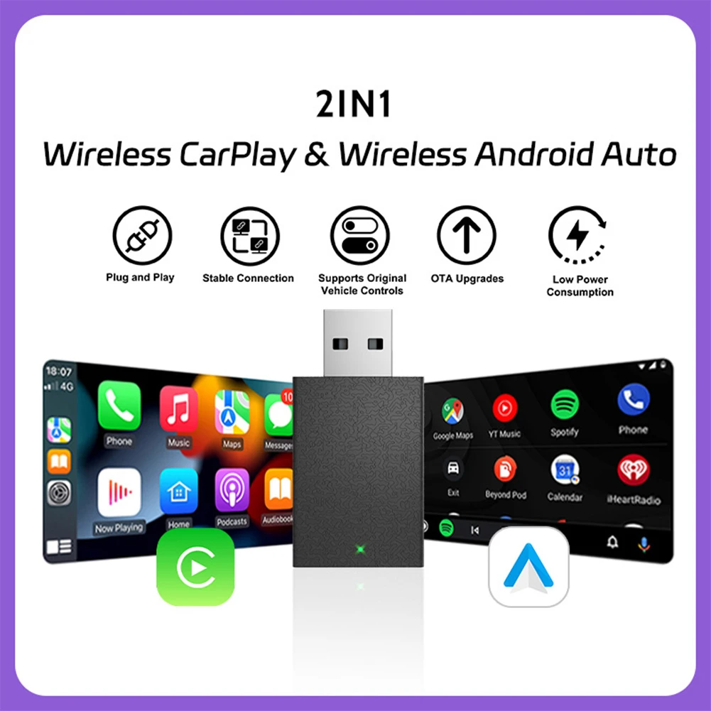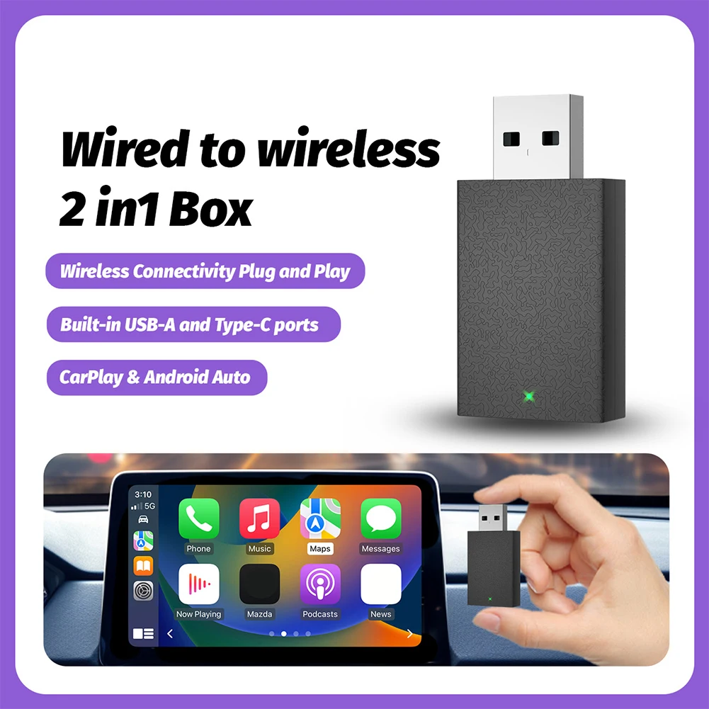 1/2PCS 2in1 Wireless Carplay Adapter 2.4/5G WiFi USB Plug and Play Smart Mini Box Wired to Wireless CarPlay&Android Car AI Box