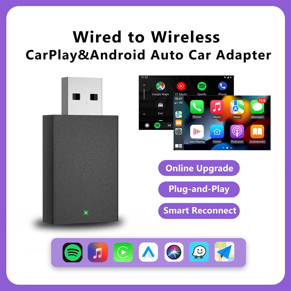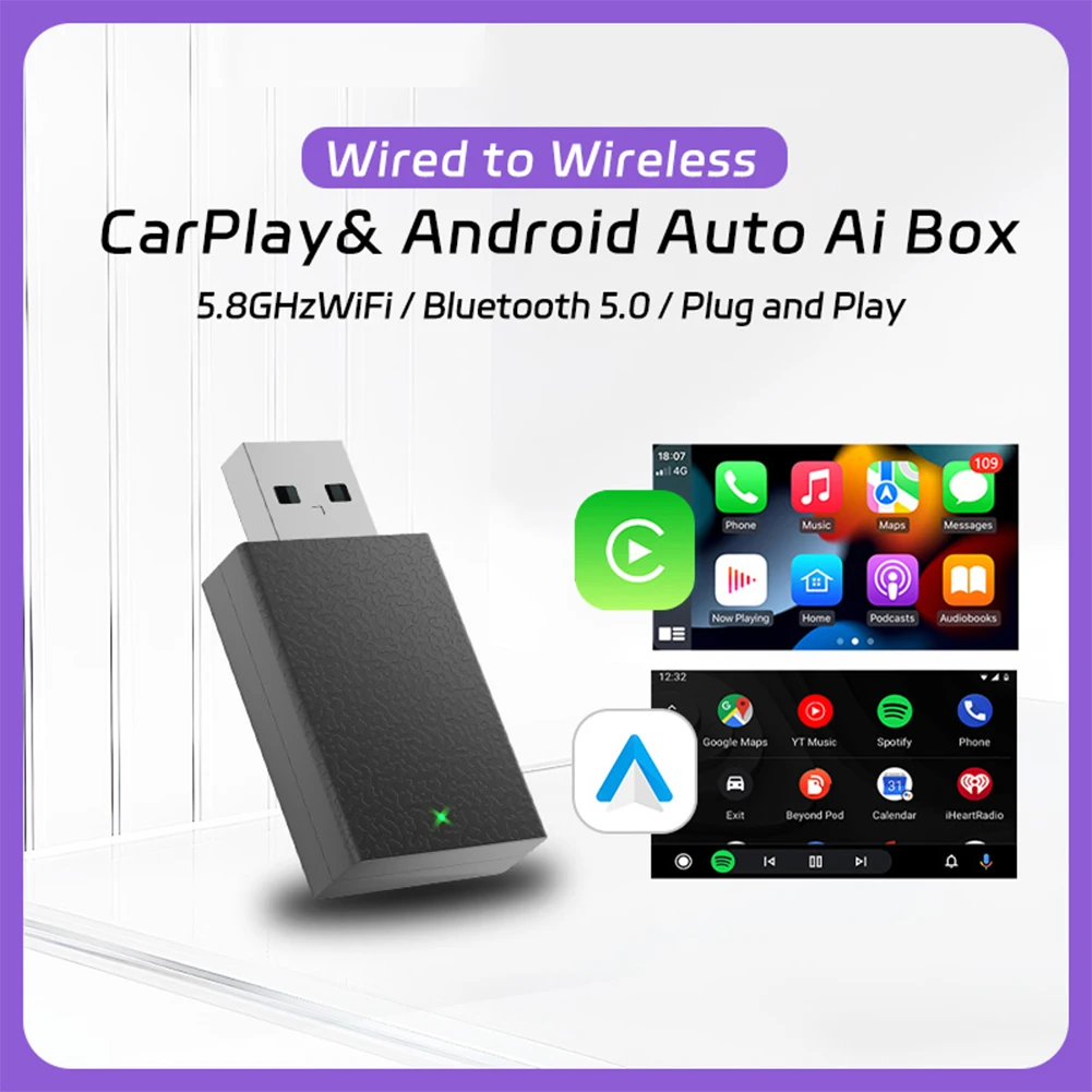 Wired To Wireless Carplay & Android Auto Smart Mini Box USB Plug and Play Wireless Adapter Bluetooth-Compatible 5.0 for OEM Wired CarPlay Android Auto Car Systems