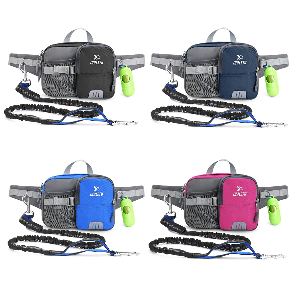 Retractable Hands Free Dog Leash with Waist Bag Reflective Stitches Water Bottle Holder Adjustable Waist Belt Dog Running Leash for Running Walking Hiking Jogging Biking