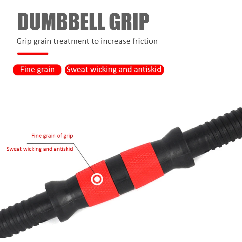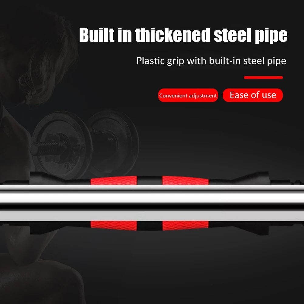 Plastic Dumbbell Bar Set Connecting Steel Tube with Non-Slip Grip Fitness Weightlifting Training Barbell Bar for Gym Home Sports Feature: 1. The dumbbell handle is made of solid steel inside and ABS plastic on the outside. 2. Dumbbell grip is a standard dumbbell grip, which is very suitable for various warm-up exercises and strength training, such as arm, shoulder, abdomen, leg or back training. 3. 2 fixed rings: with the help of the rubber handle on the rod to provide comfort and stability. There are also two fixing rings on each rod to prevent the weightlifting board from being fixed in place when lifting. 4. Easy to disassemble: this design makes it easy to install and disassemble the board. 5. Wide range of application: dumbbell grip can be used in a variety of exercises. Because of their size and versatility, they can be used to develop different exercise patterns to complete tasks or specific intensity of exercise. Specification:  Note: