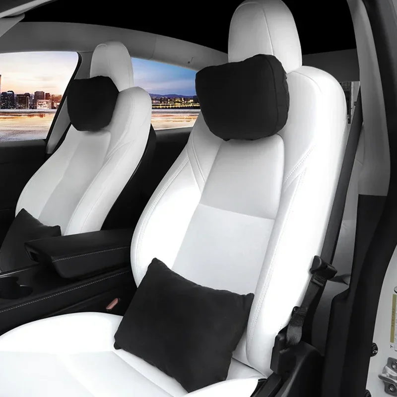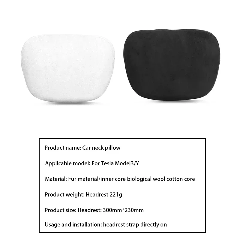 1 Pc Neck Pillow cushion For Tesla Model 3/Y Black White Bio-Wool Cotton Core Inside Odorless Soft car accessories