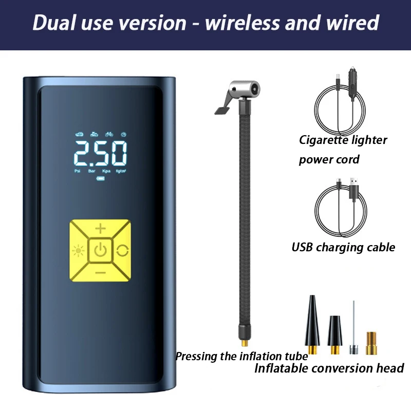 Package included: 1 x inflation pump, 1 x inflation hose, 1 x USB data cable, 1 x cigarette lighter power cable, 1 x instruction manual, air nozzle * 4pcs