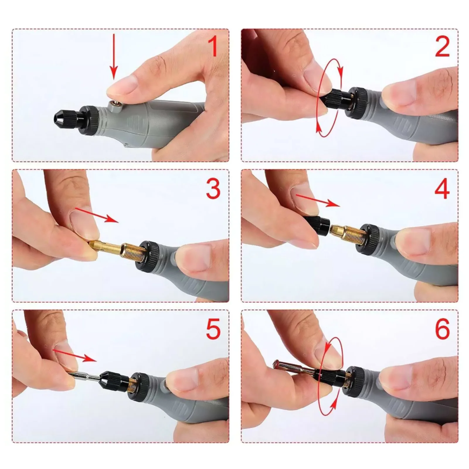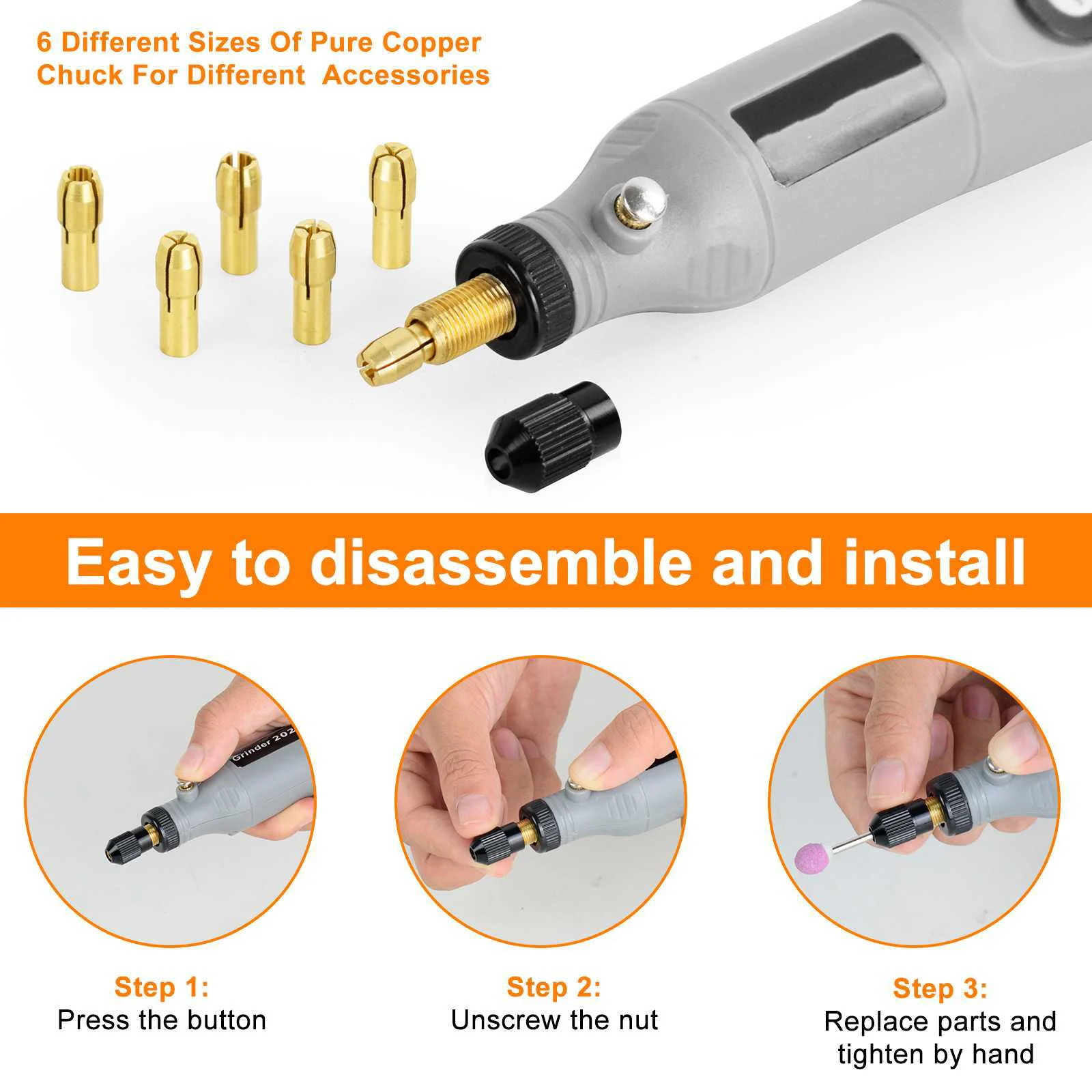Comprehensive Accessory Kit: Packed with an impressive assortment of 25 high-quality rotary tool accessories, this kit caters to a vast range of household projects and crafting endeavors. From drilling to grinding, engraving to polishing, the possibilities are endless with this comprehensive set.
