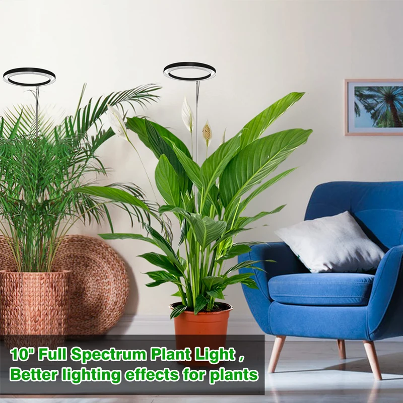 10″ LED Ring Grow Light for Indoor Plant Full Spectrum Large Plant Light Dimmable Height Adjustable Growing Lamp with Auto Timer