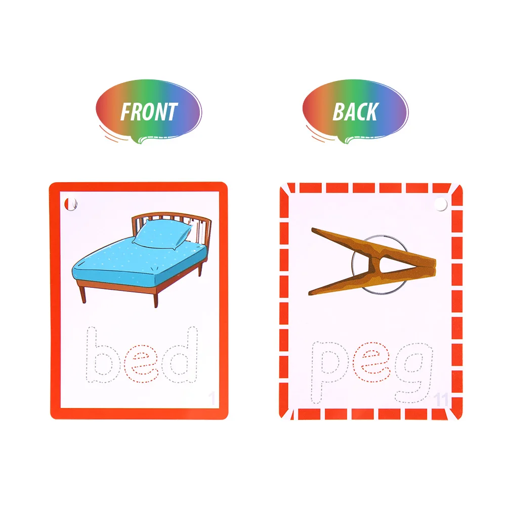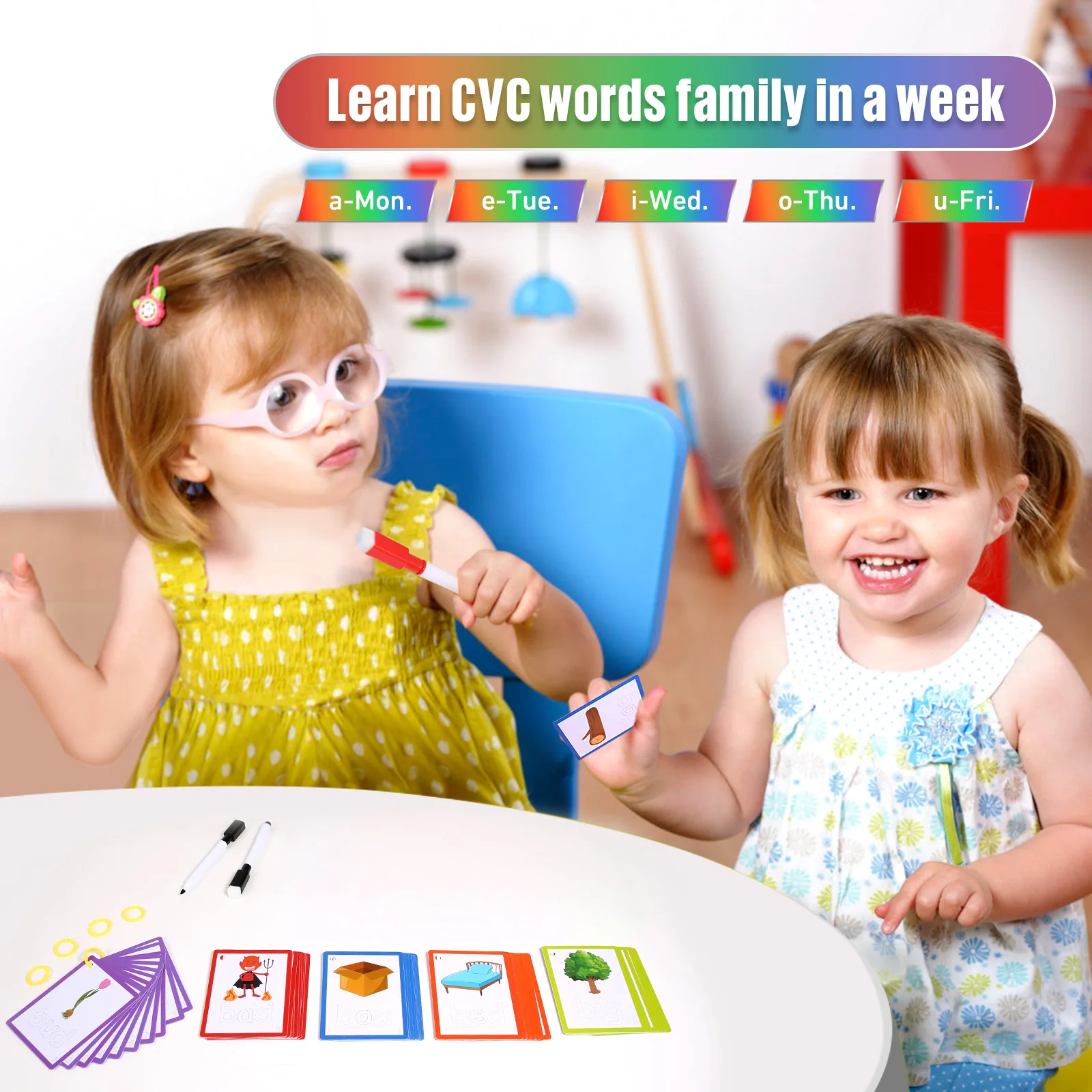 100 CVC Words Sight Words Flash Cards, Phonics Games Learn to Read Write Spell Erasable Flashcards Pen, Montessori Stationery