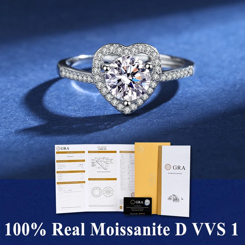 100% Real Moissanite Ring D VVS1 Pass Diamond Test Pen Adjustable Size S925 Sliver GRA Certificate Wedding Rings for Women