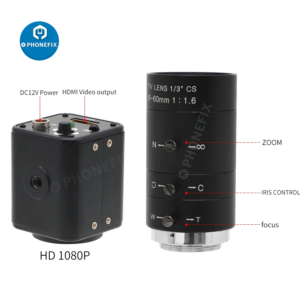 2.0 MP HD 1080p Video Live Stream Camera, HDMI Video Output Camera, Equipped with 6-60mm 1/3″ CS Mount Lens CCTV Lens IR F1.6 Manual Zoom Manual Iris Camera Lens for Live Broadcast.