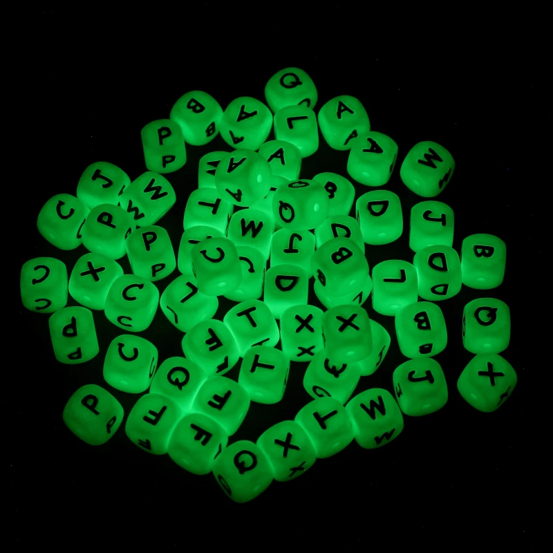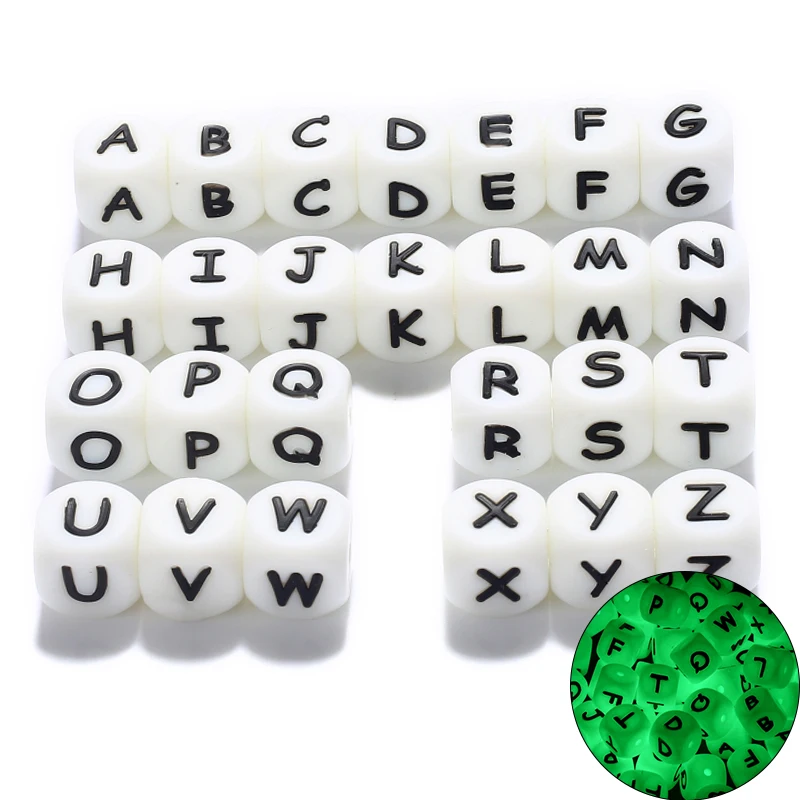 10pcs Baby Luminous Silicone Beads Letters Pacifier 12mm Alphabet Personalized Name DIY Teether Teething Beads Toys Gift