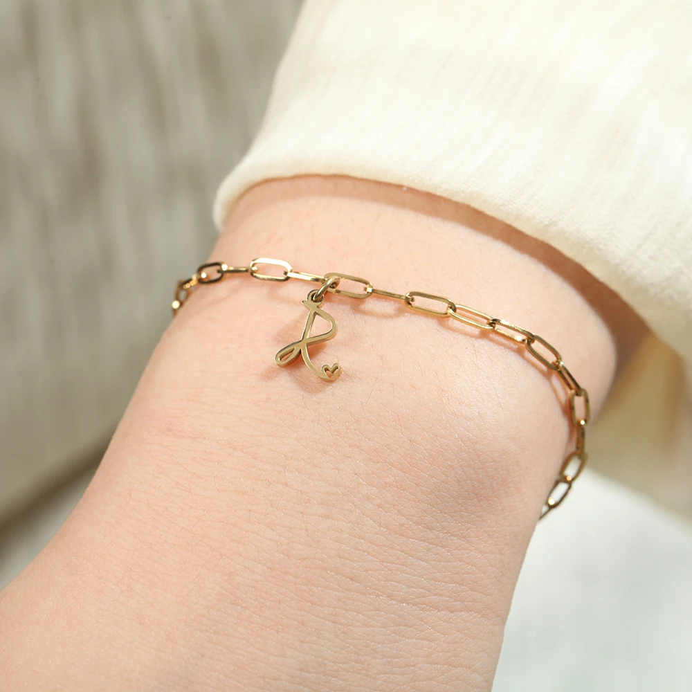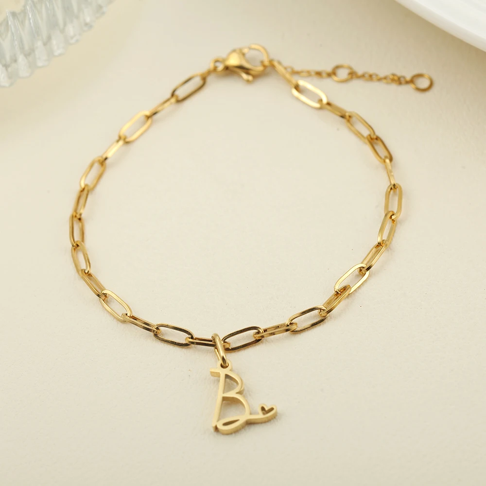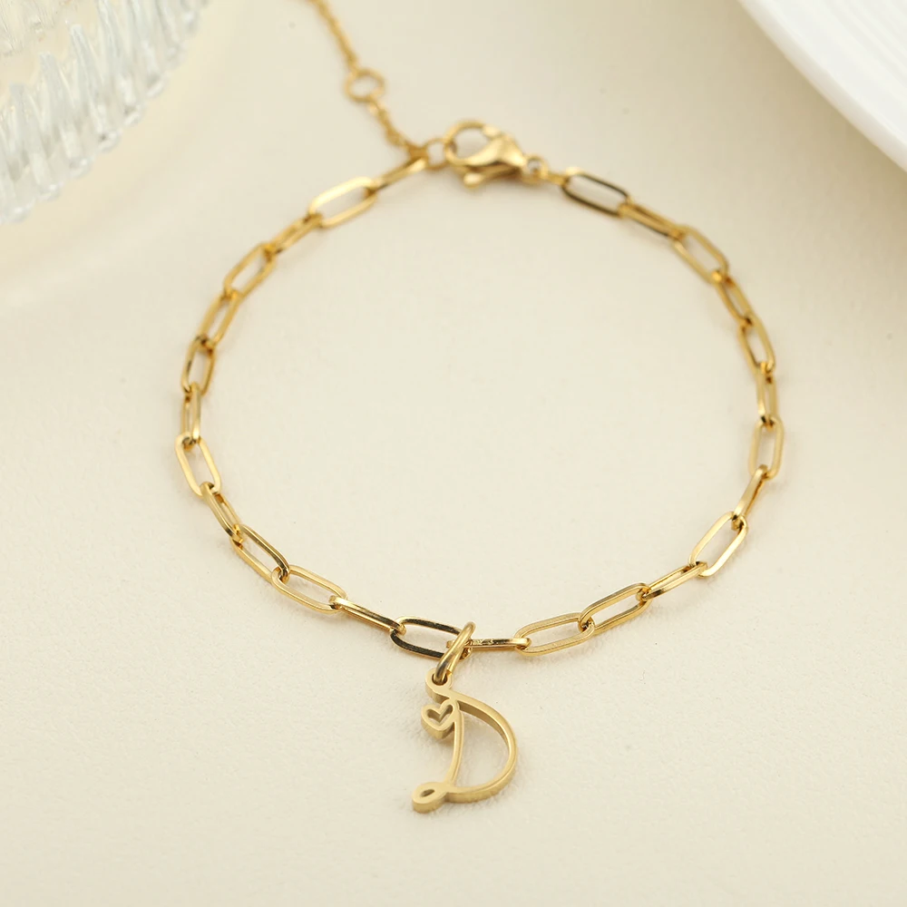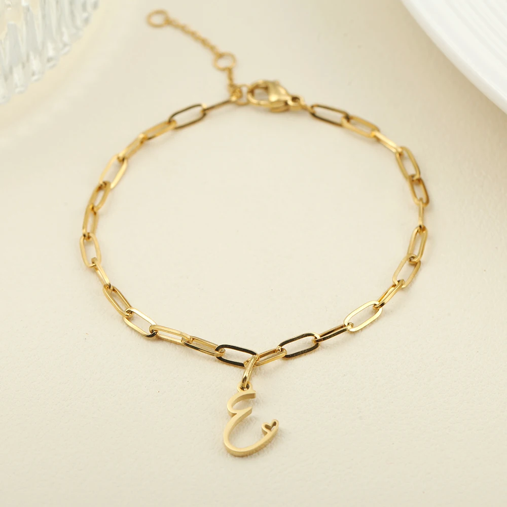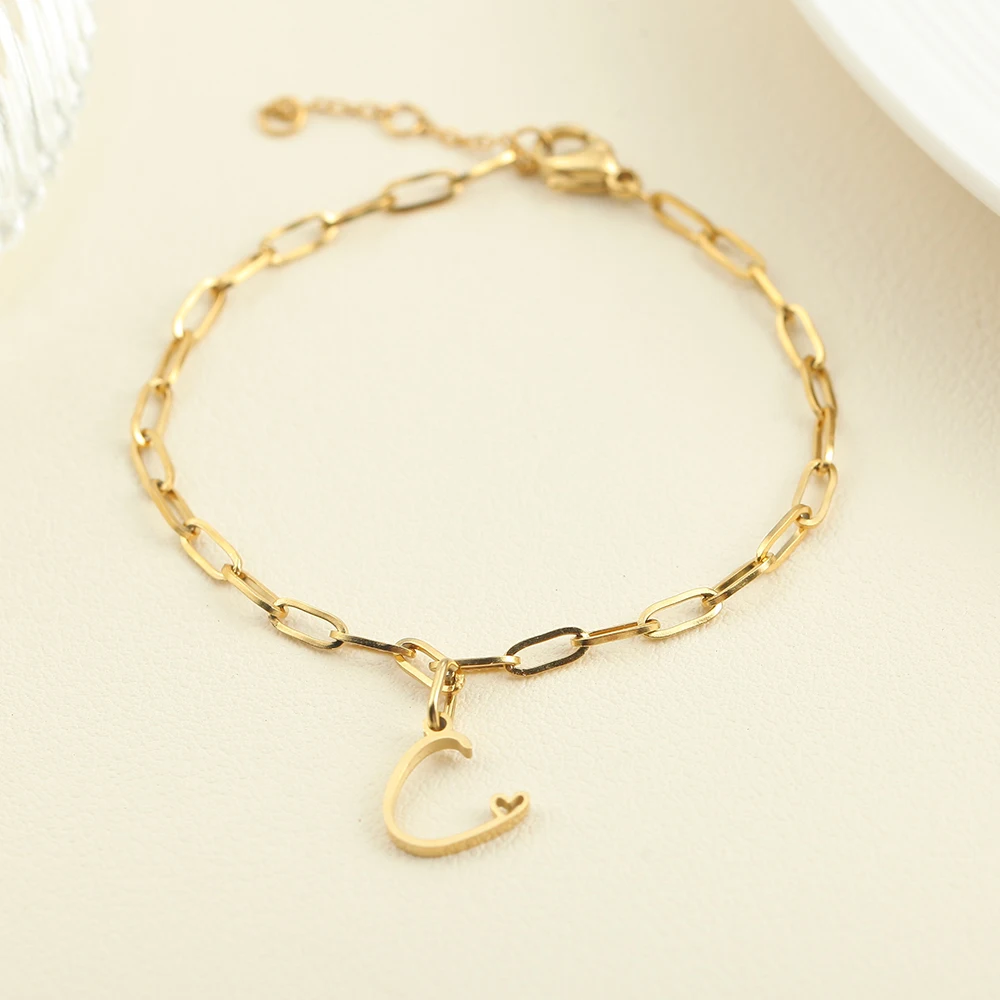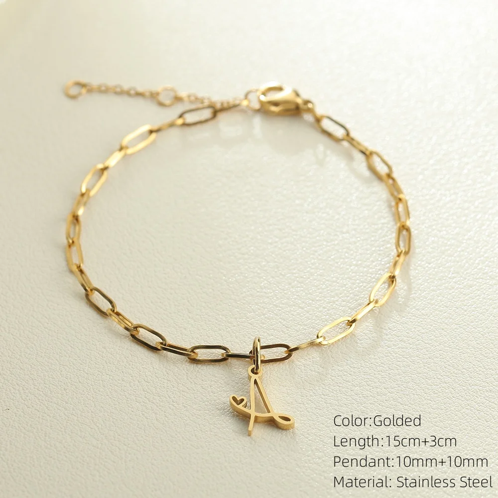 10PCS Simple Style Golded Stainless Steel Women’s Name Bracelet 26 Initial Letter Pendant Summer Fashion Jewelry Gift Wholesale