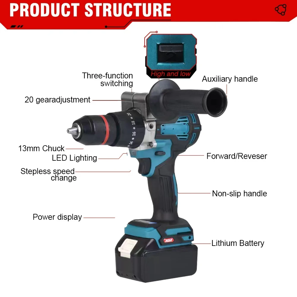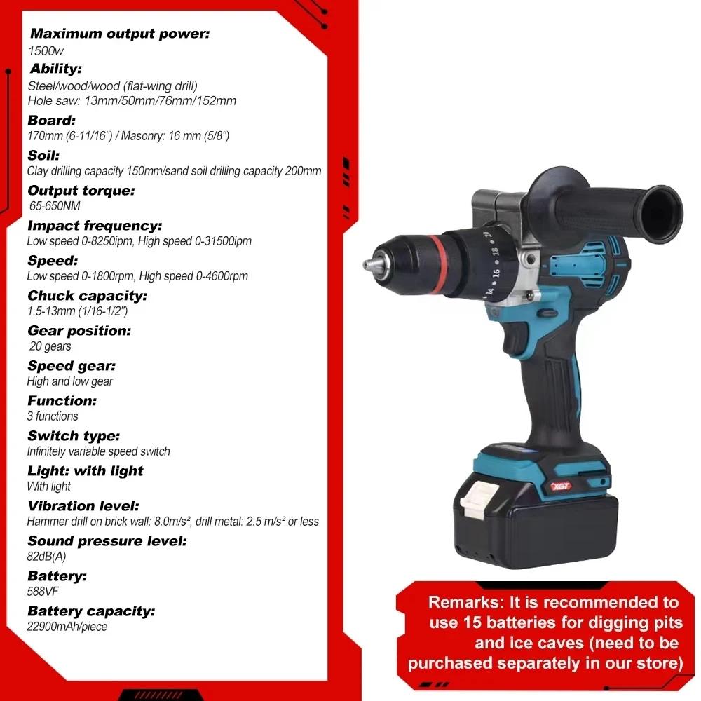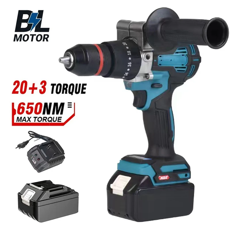13MM 650NM Brushless Electric Drill Cordless Screwdriver Impact Drill Li-Ion Batteries Power Tool For Makita 18v Battery