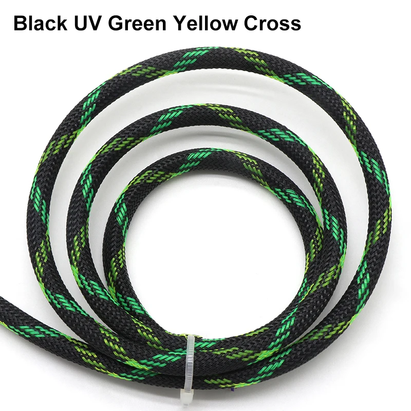 Black UV Green Yellow Cross PET Braid Sleeves 2/4/6/8/10/12/14/16/20/25/30mm High Density Insulated Snake Skin Cable Wrap Sheath