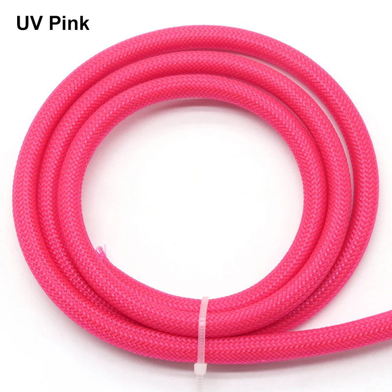 UV Pink PET Braid Sleeves 2/4/6/8/10/12/14/16/20/25/30/40mm High Density Insulated Snake Skin Cable Wrap Sheath