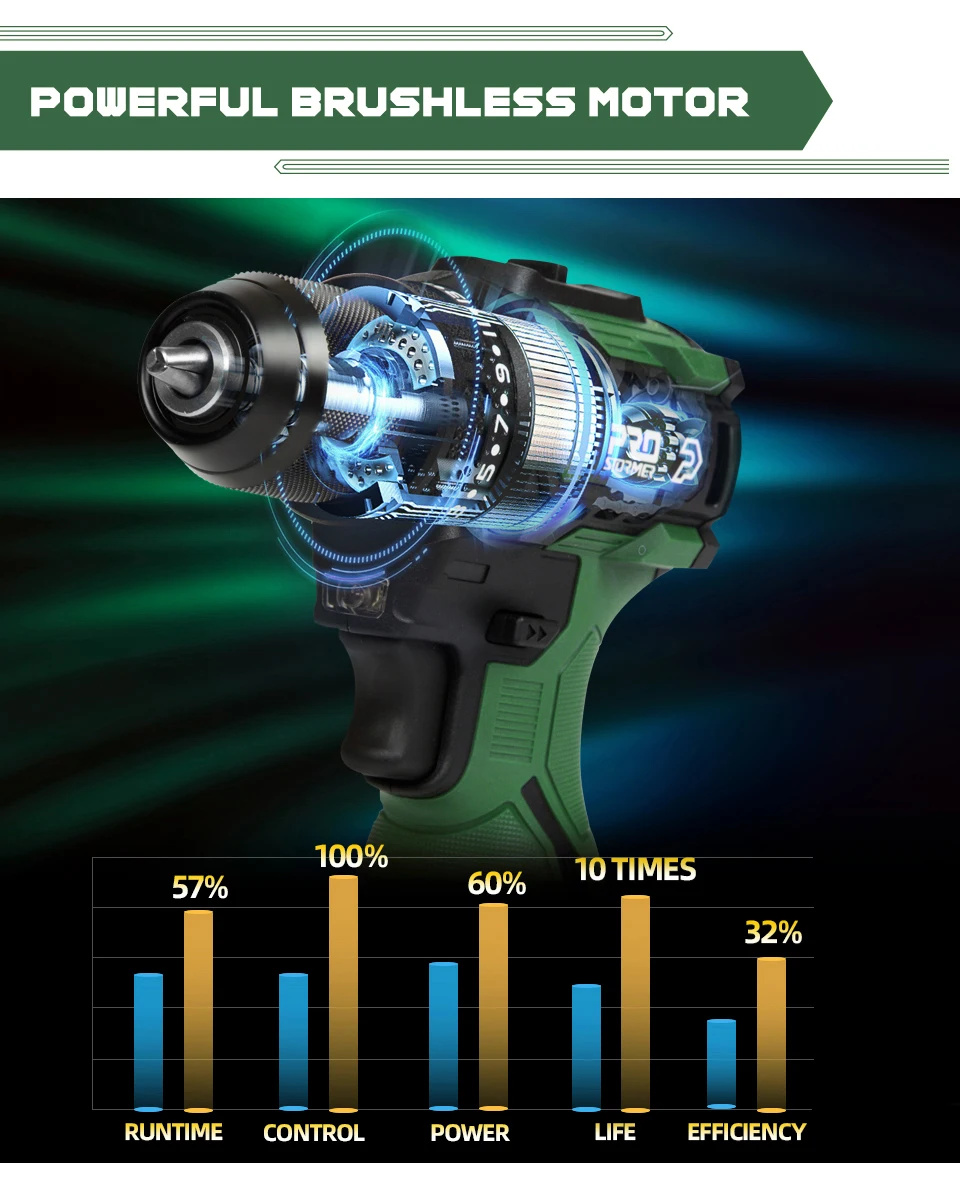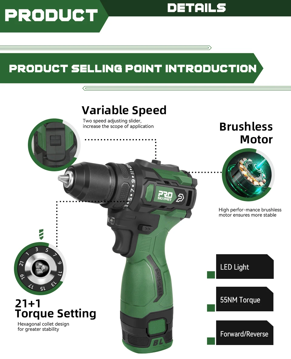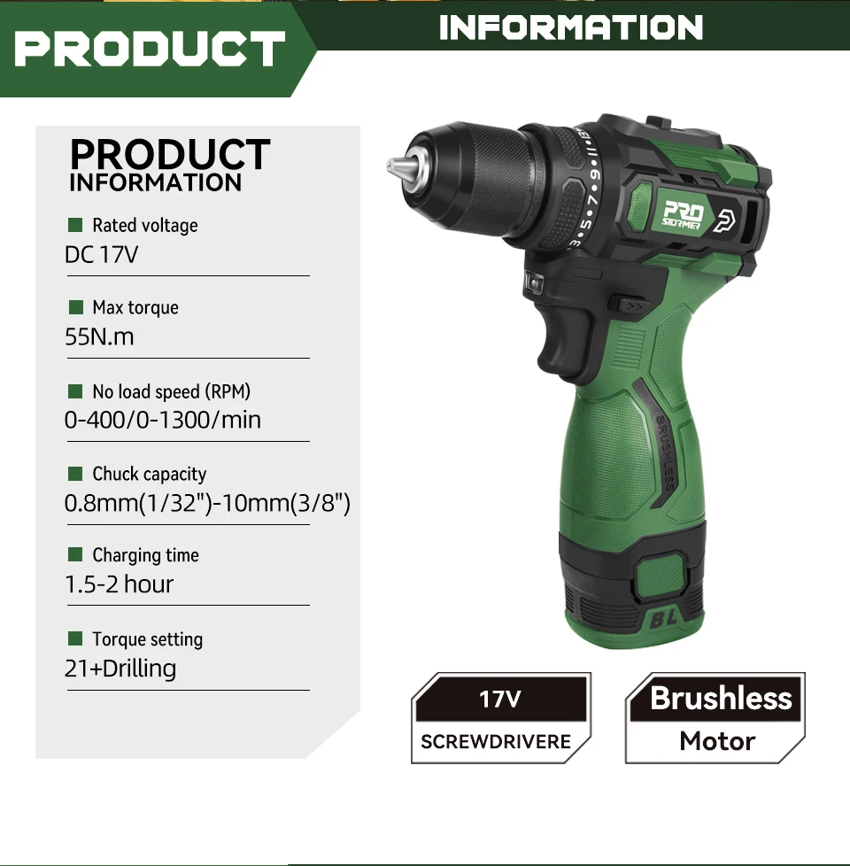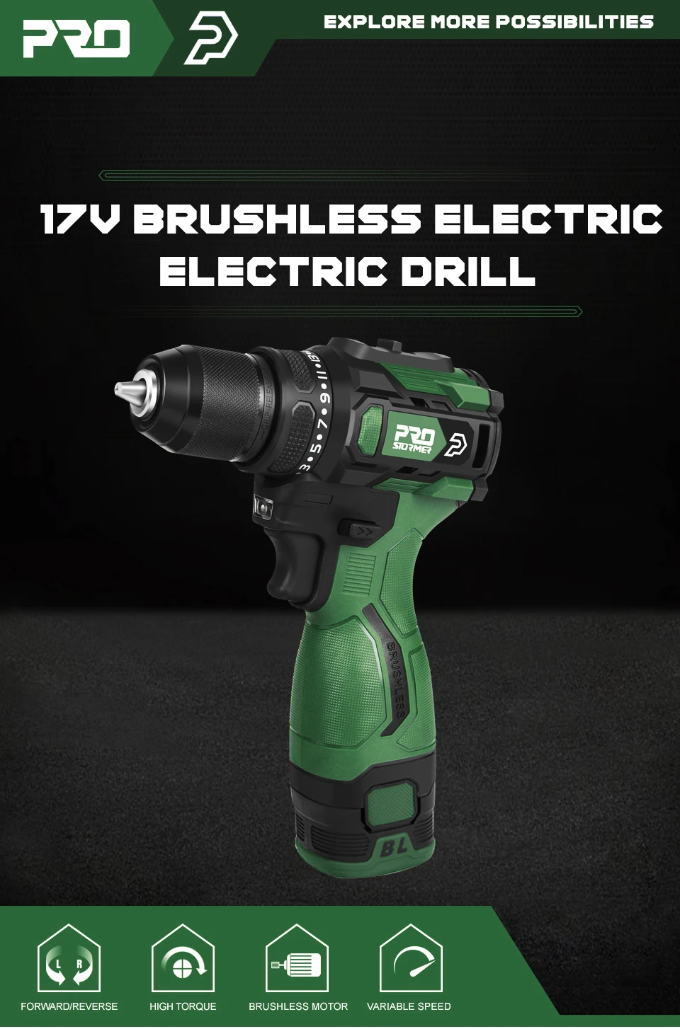 17V 55NM Brushless Electric Drill Cordless Driller Mini Driver Screwdriver Li-ion Battery 5pcs Bit Power Drill By PROSTORMER