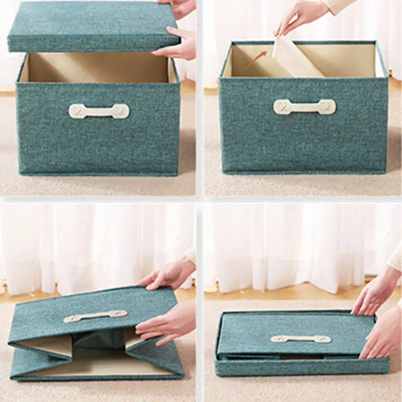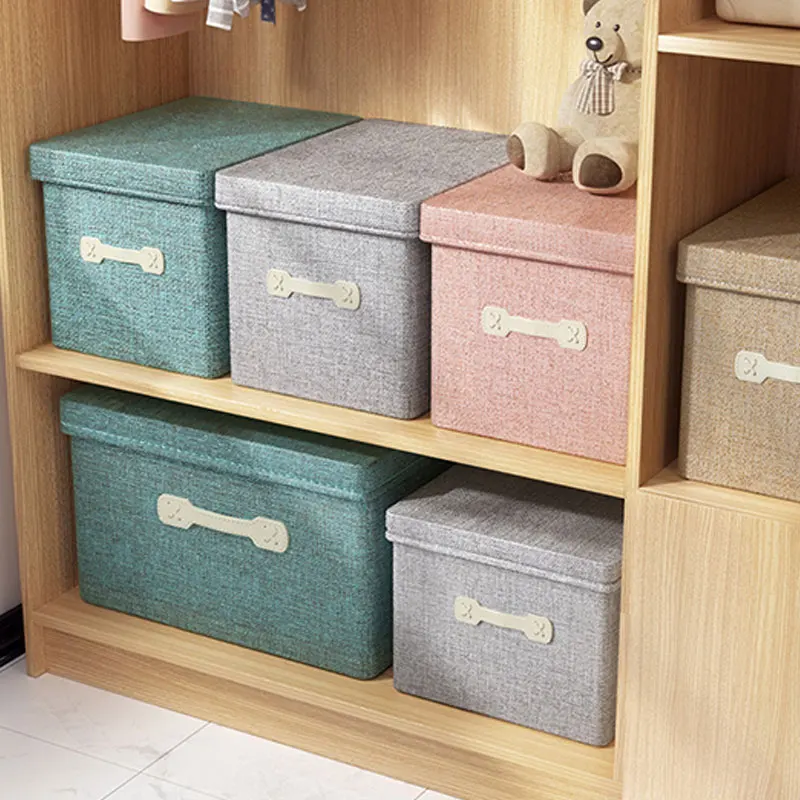 1PC Cotton and Linen Organizer Foldable Wardrobe Storage Bin Drawer Organizer with Lid Large Capacity Clothes Toy Organizer