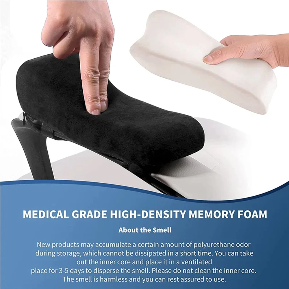 1. 【Premium Memory Foam with Cooling Gel Pad Top】 — The inner core of office chair arm pads is made of 100 percent pure memory foam with moderate hardness which provides a cozy feeling with soft touch. The memory foam cushion includes a cooling gel insert on top to maximize comfort by keeping you cool and absorbing body heat to better adapt to your contours.