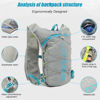 3. Three-compartment Storage: This water backpack for hiking doubles as a vest, offering convenient storage options both at the front and back. Featureing a two-layer main compartment, while the front left pocket perfectly holds your phone. Additionally, the right front pocket provides two drawstring pockets of stashing items that require quick access.
