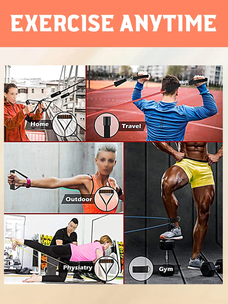 1set Resistance Bands Set – Exercise Bands with Handles, Door Anchor, Legs Ankle Straps, for Heavy Resistance Training