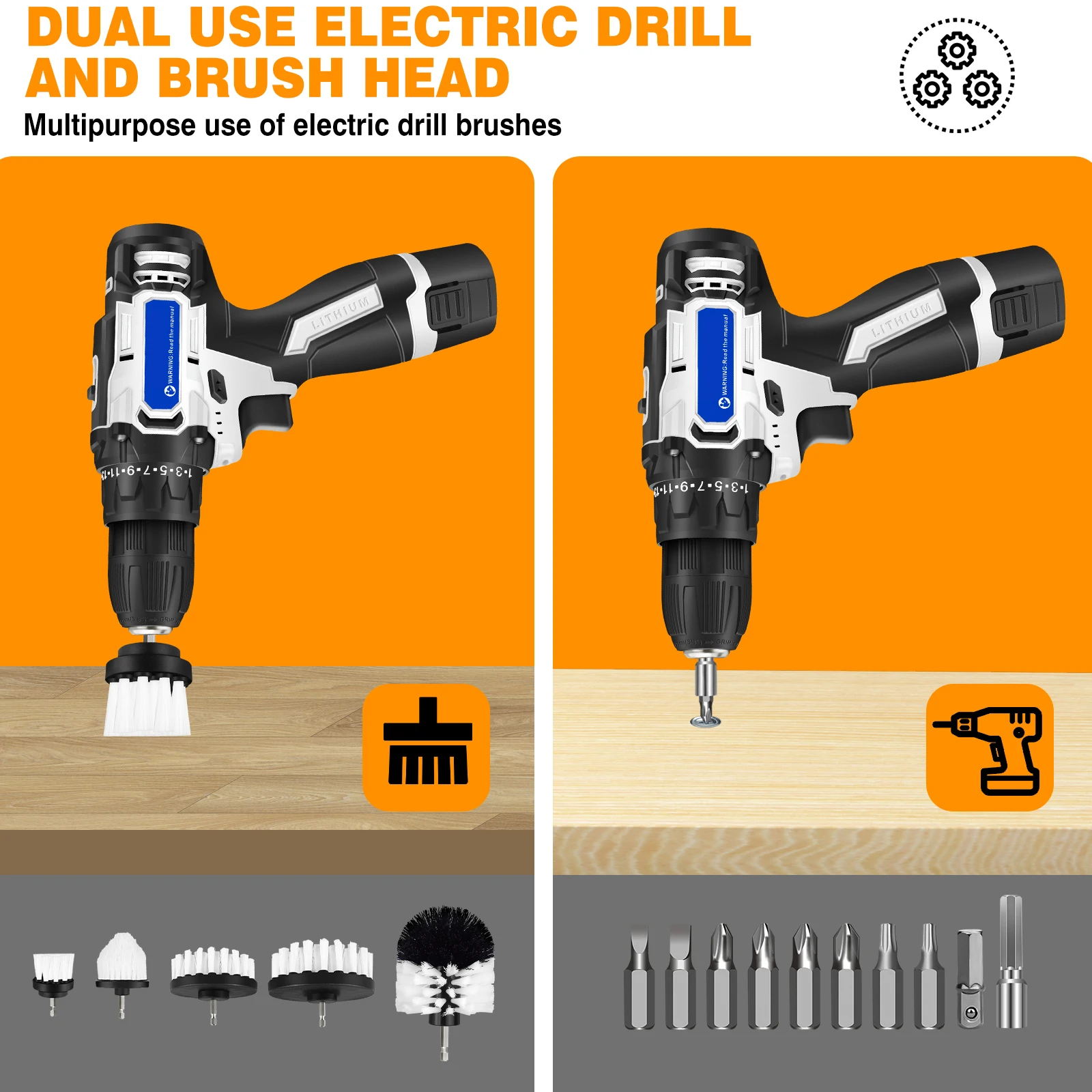 drill brush attachment is fixed with hexagonal screws, just insert the