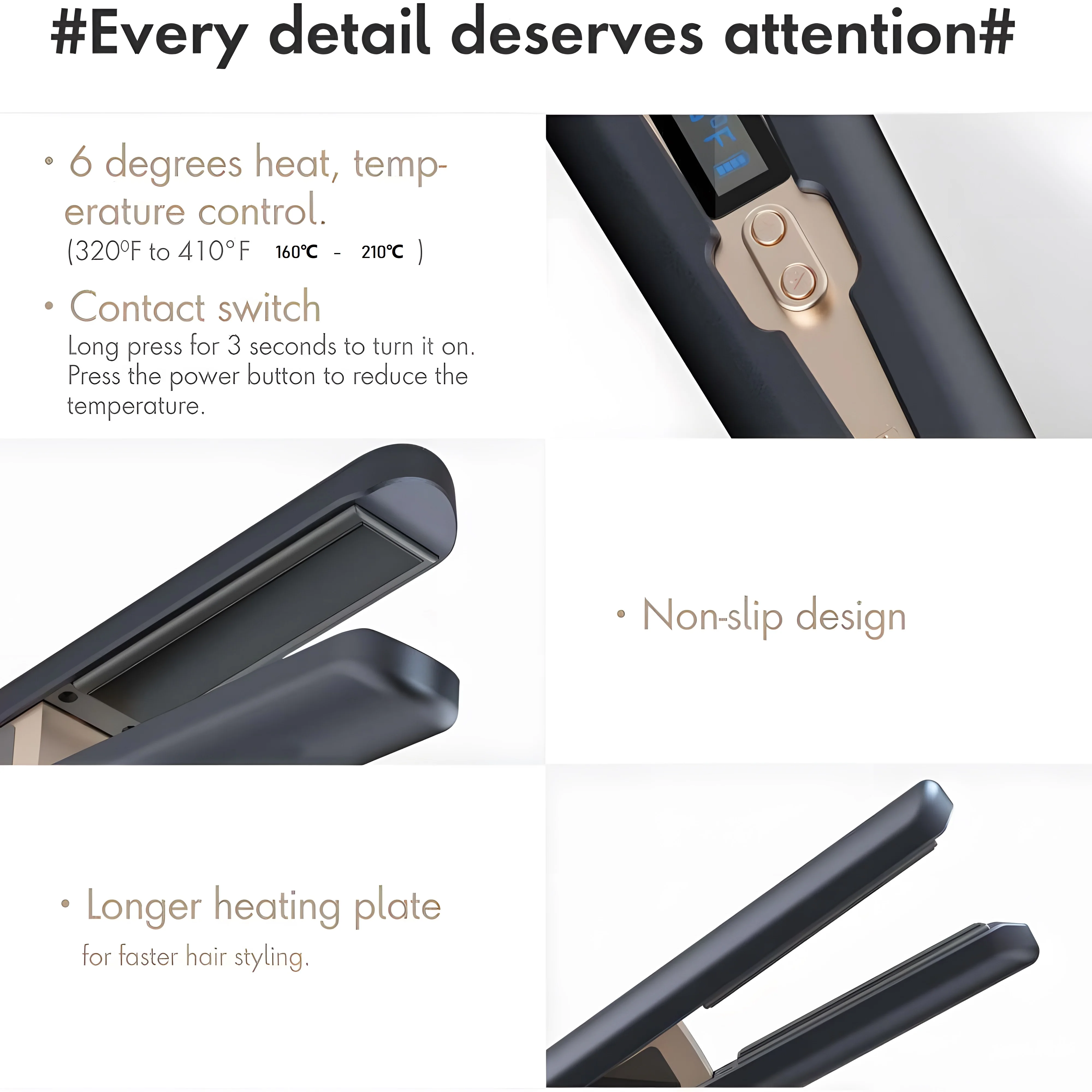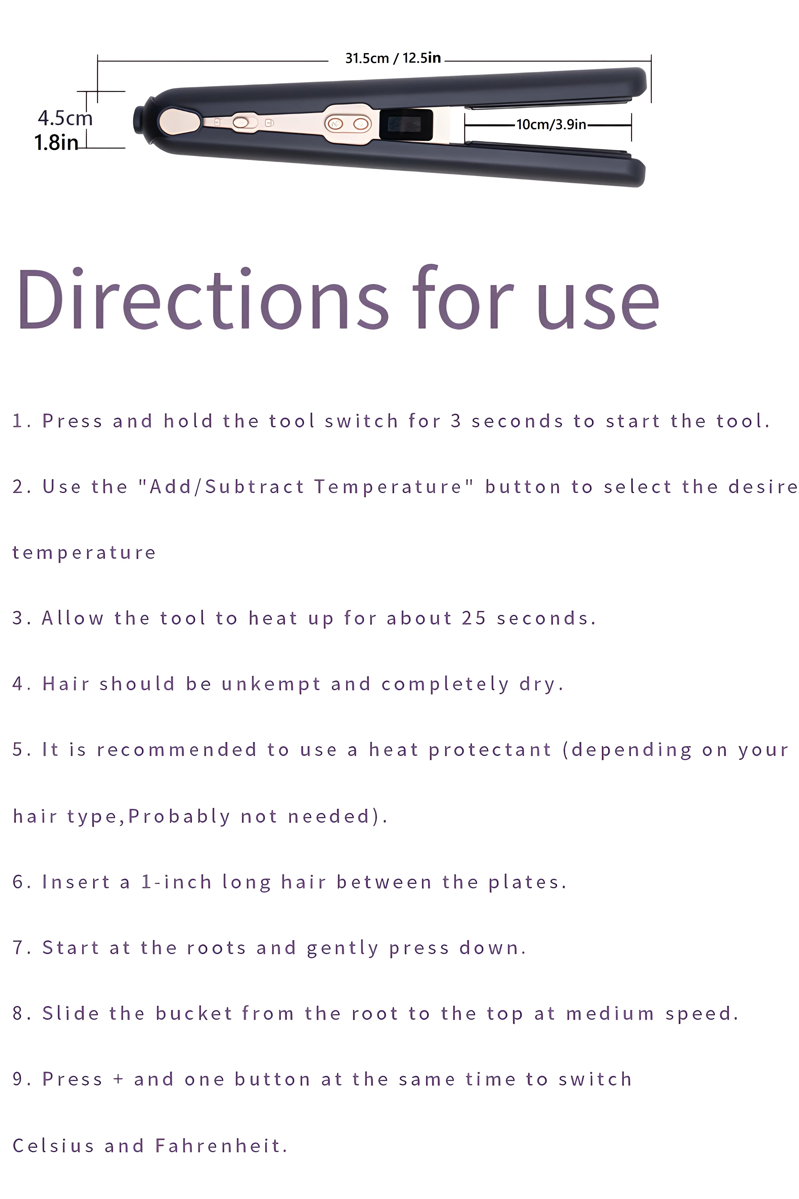 1. Enjoy the convenience of an LCD display that provides comprehensive monitoring of temperature changes and power levels. The high-resolution display ensures that you can easily observe and precisely control the styling process.