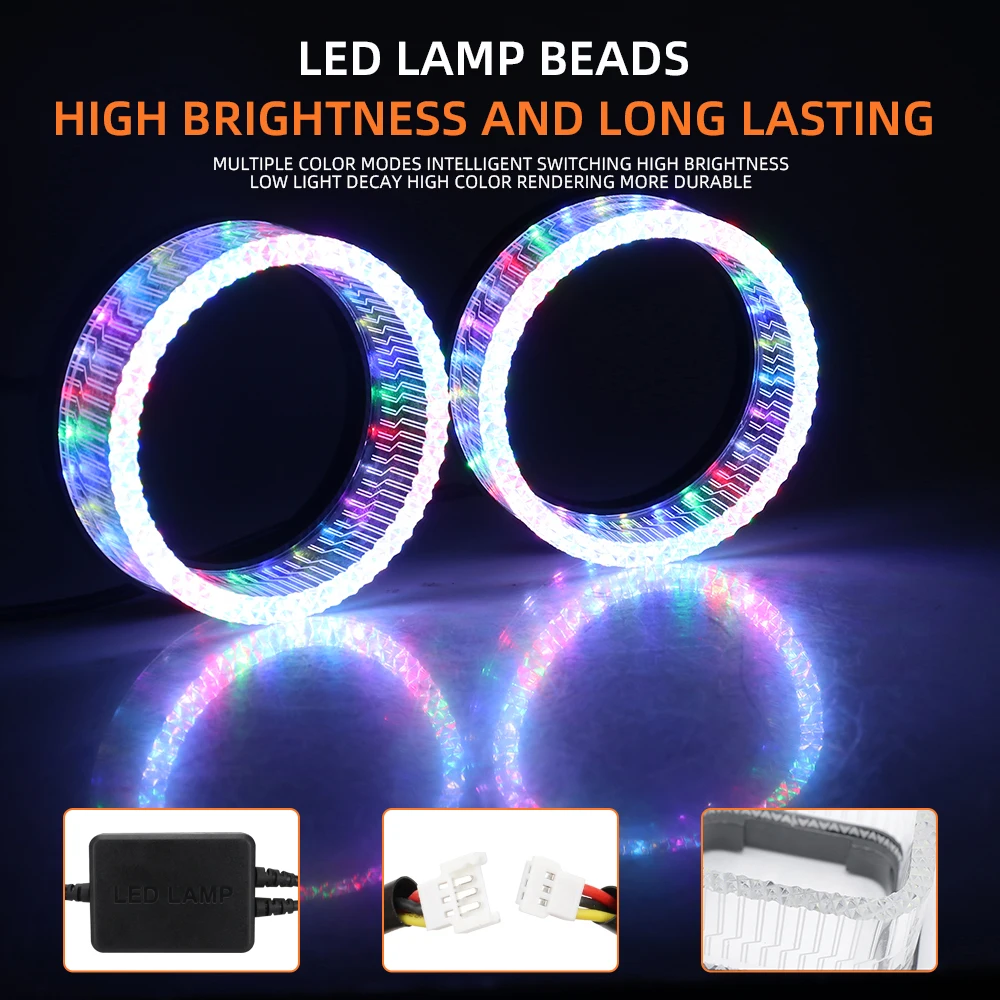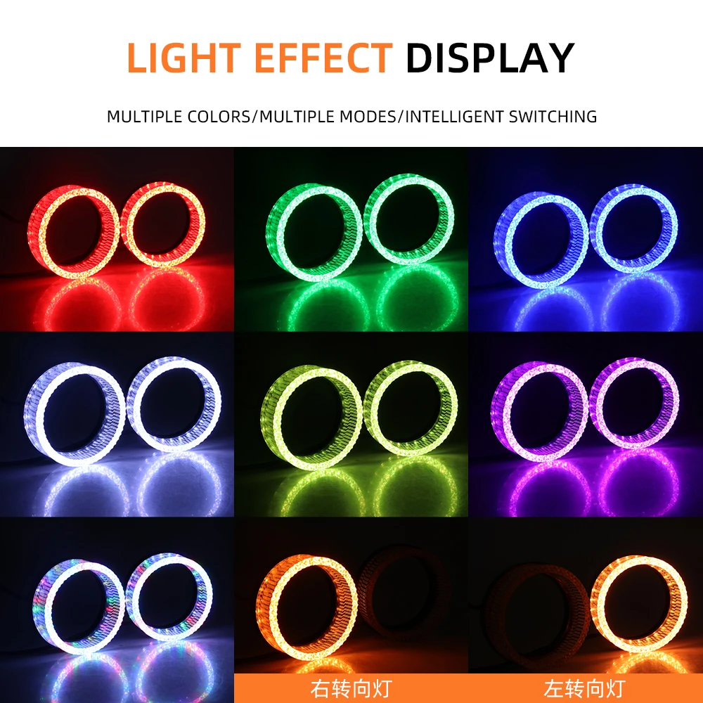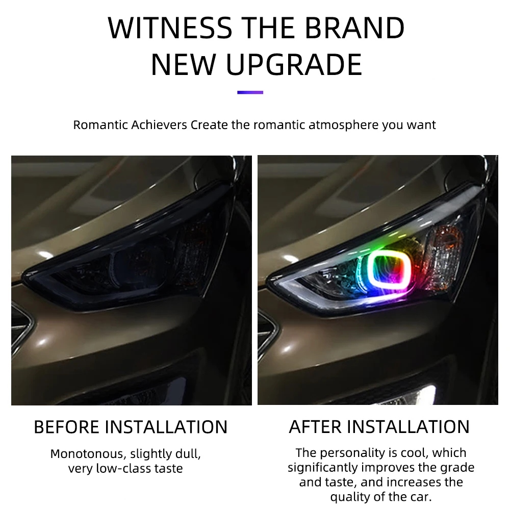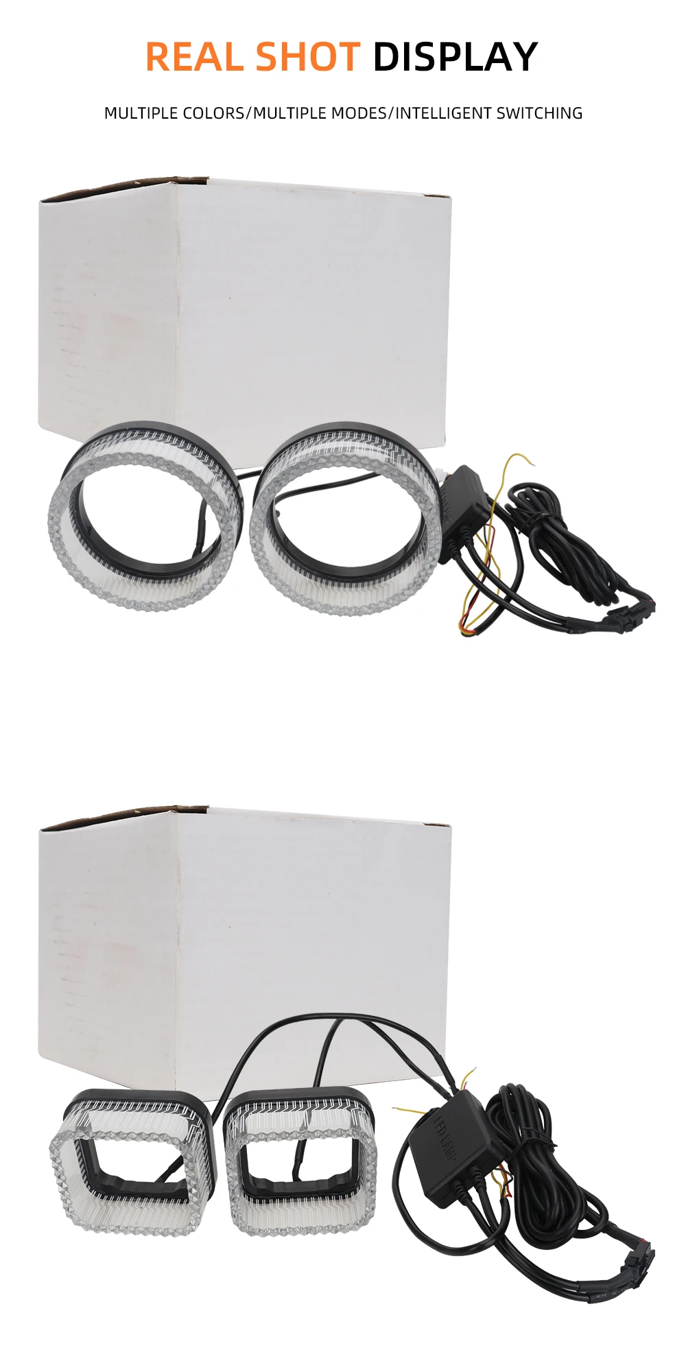 2 in 1 Led Angel Eyes Halo Square/Ring Light for Car RGB Led Symphony Angel’s Eye Headlamp App Control DRL Daytime Running Light