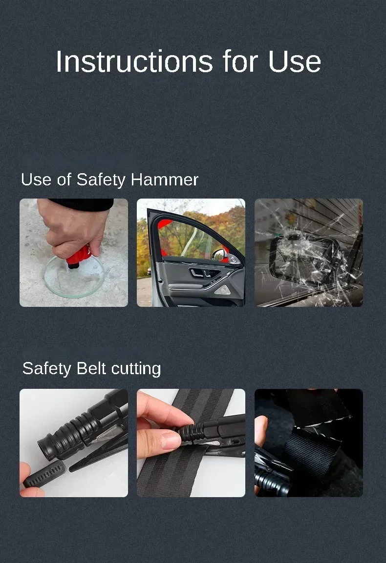 Function: broken window/ partition seat belt/ whistle warning/ help escape
