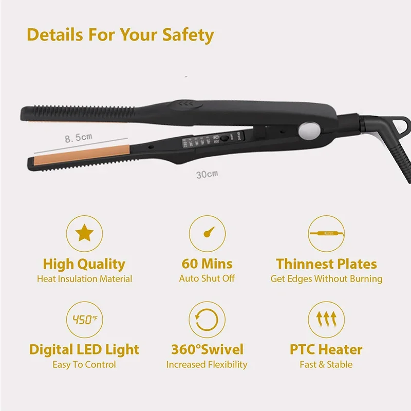 2 in 1 Small Flat Iron Hair Straightener & Curler For Short Hair Women And Men Beard Straightener Pencil Flat Iron Dual Voltage