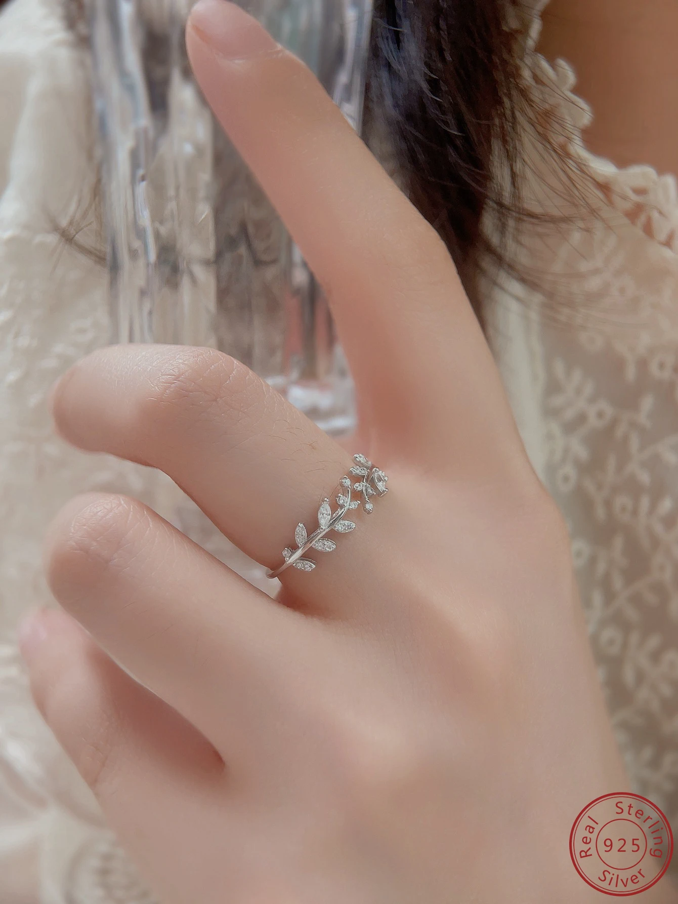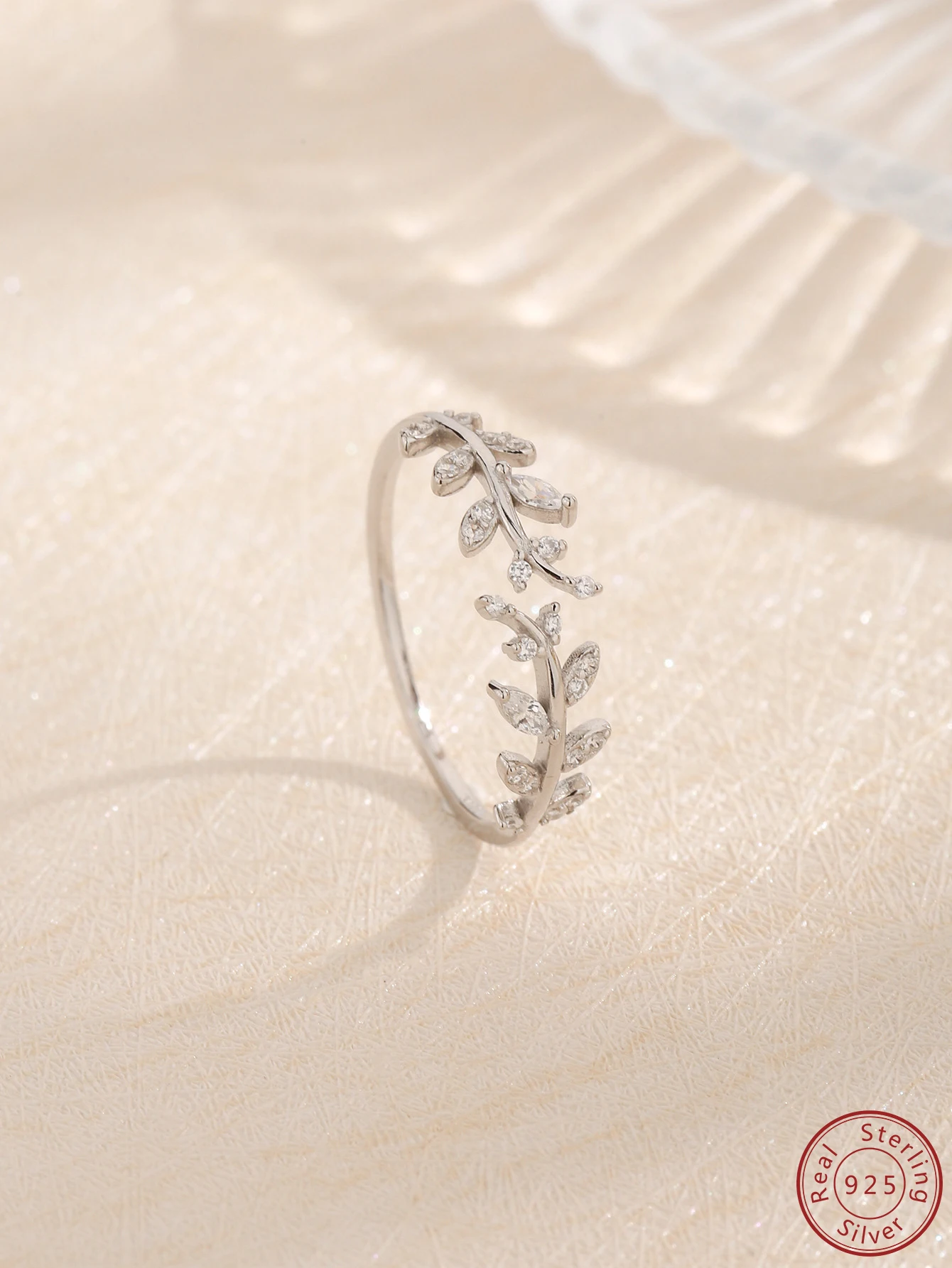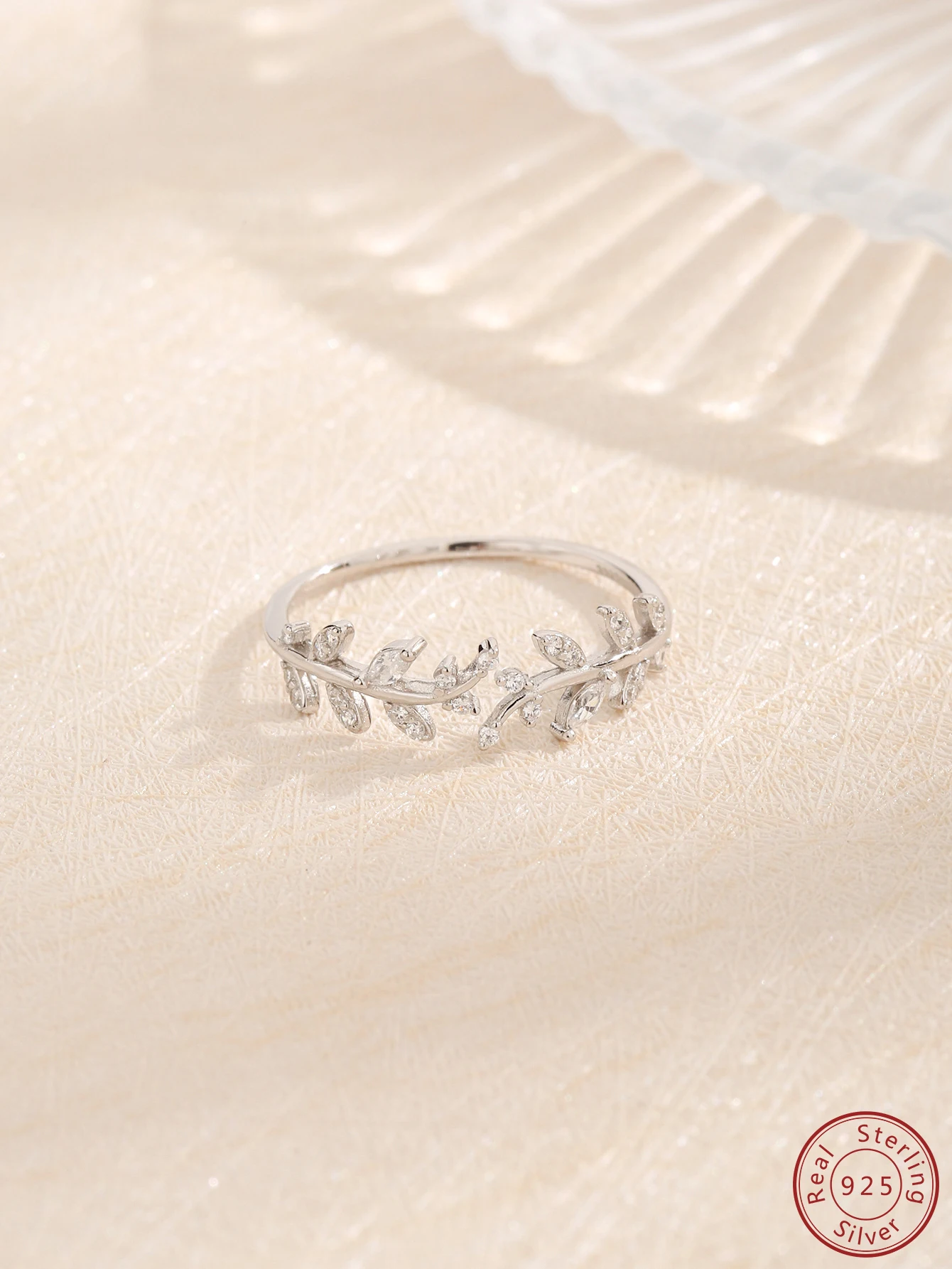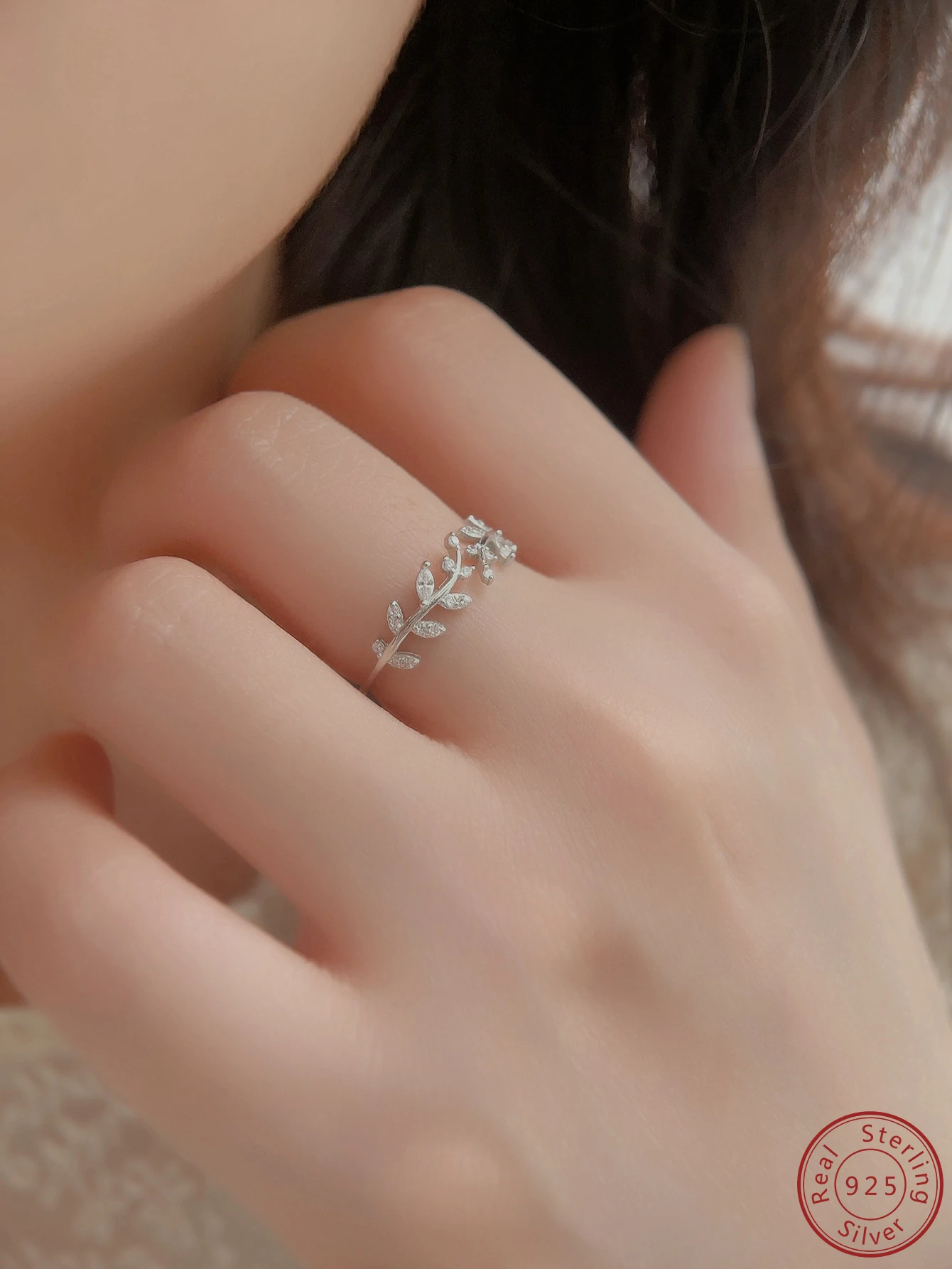 2023 New 100% S925 Sterling Silver Simple Personalized Leaf Shaped Zircon Ring Fashion niche Design Sense Open Ring Female
