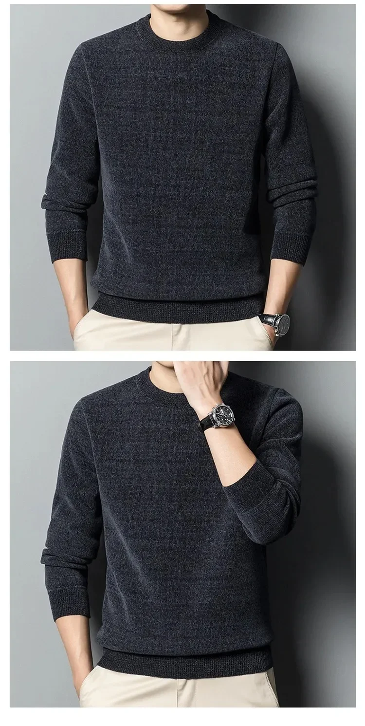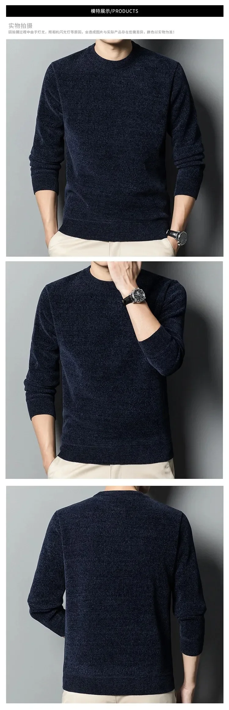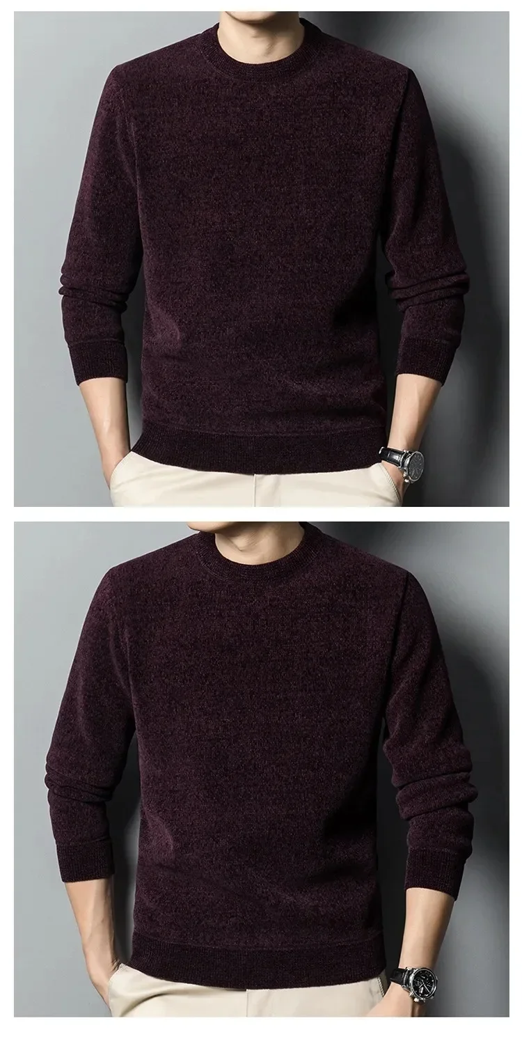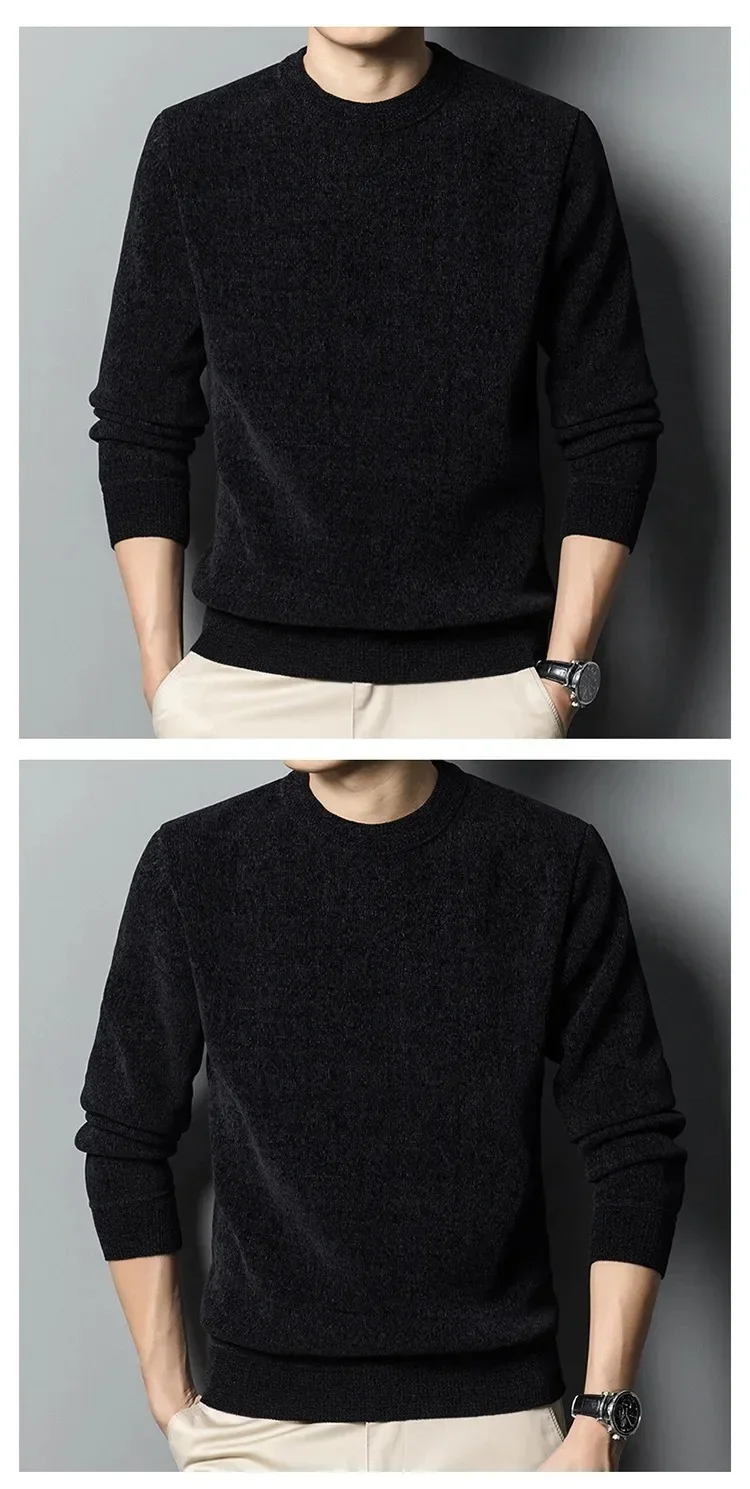 2024 New Men’s Thickened Sweater Knitted Sweaters Men Solid Fleece Crew Neck Warm Casual Top Pullover Male Knitwear Oversize 4XL