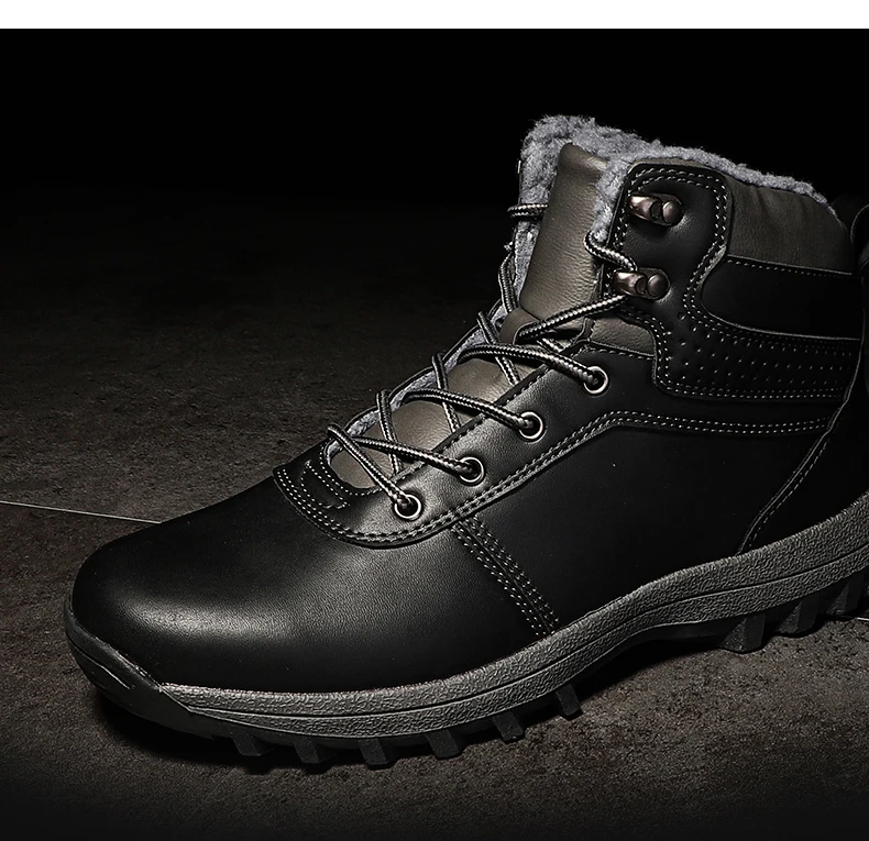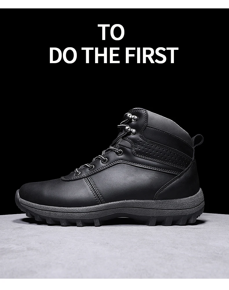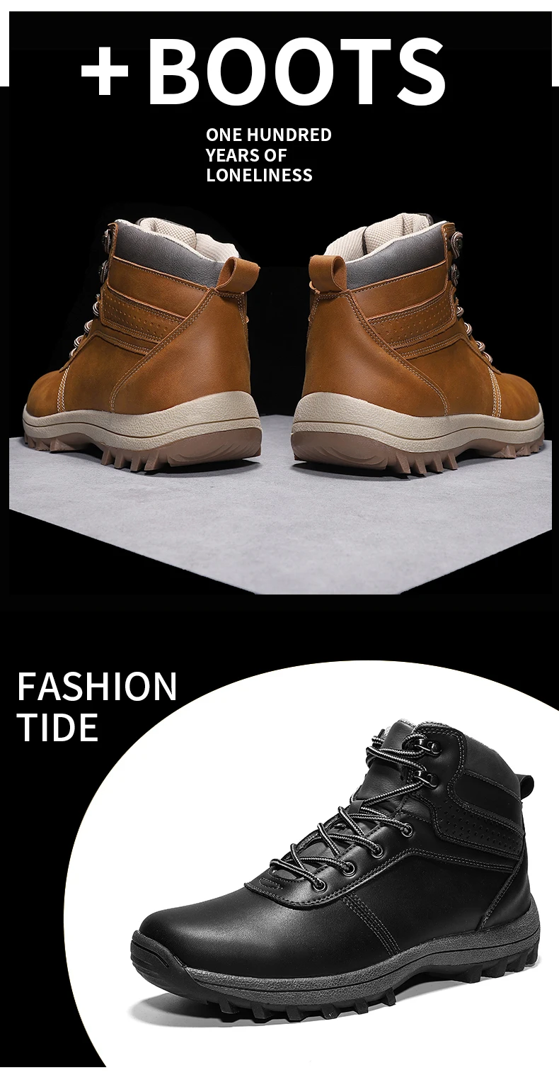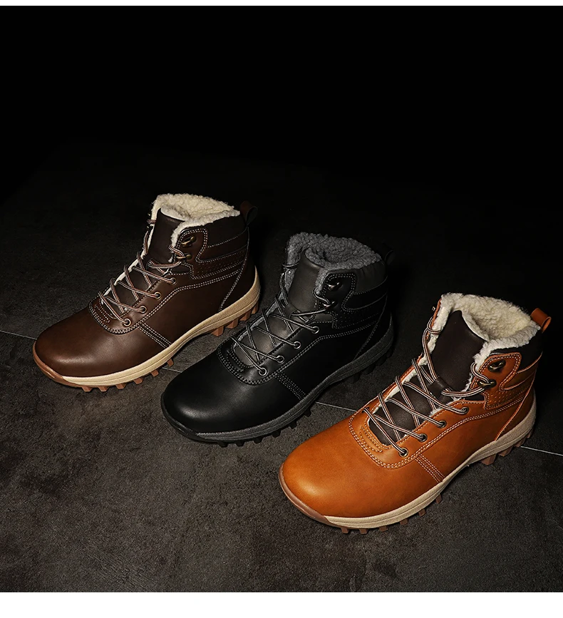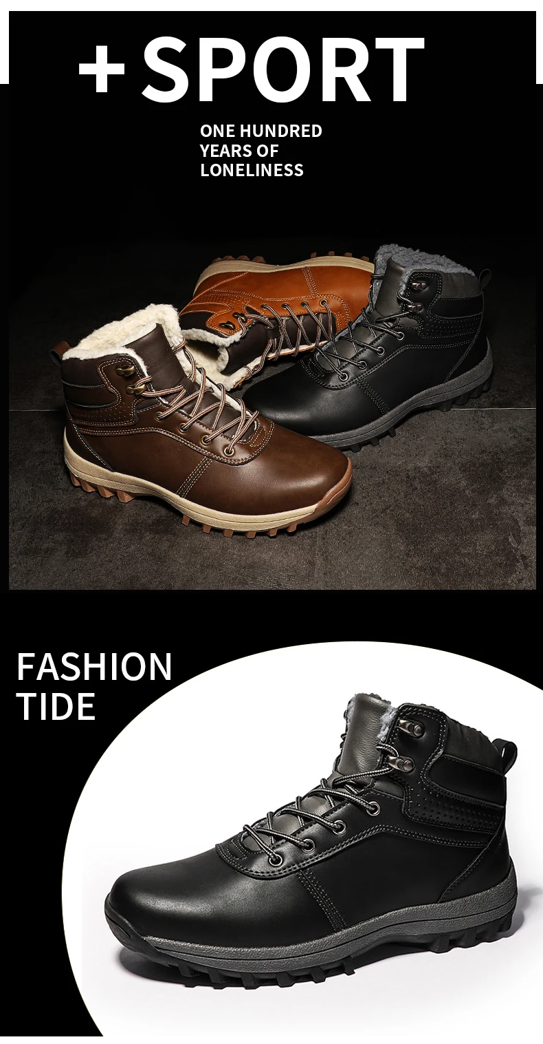 2024 Winter Men Boots Luxury Leather Plush Sneakers Climbing Hunting Shoes Waterproof Non-slip Outdoor Hiking Snow Ankle Boots