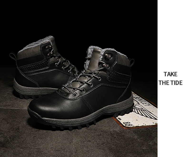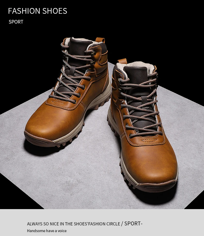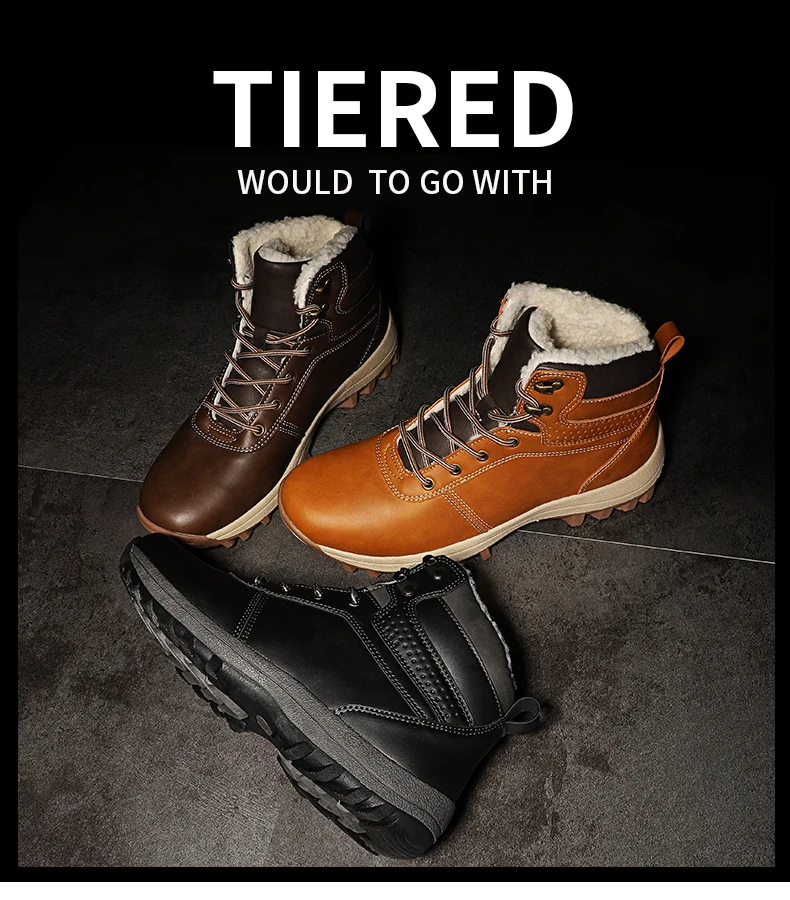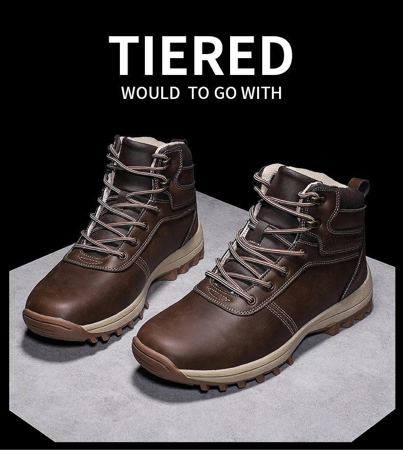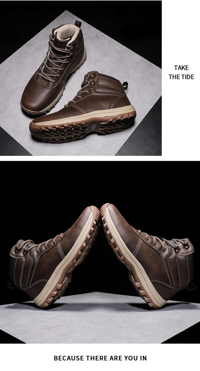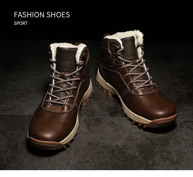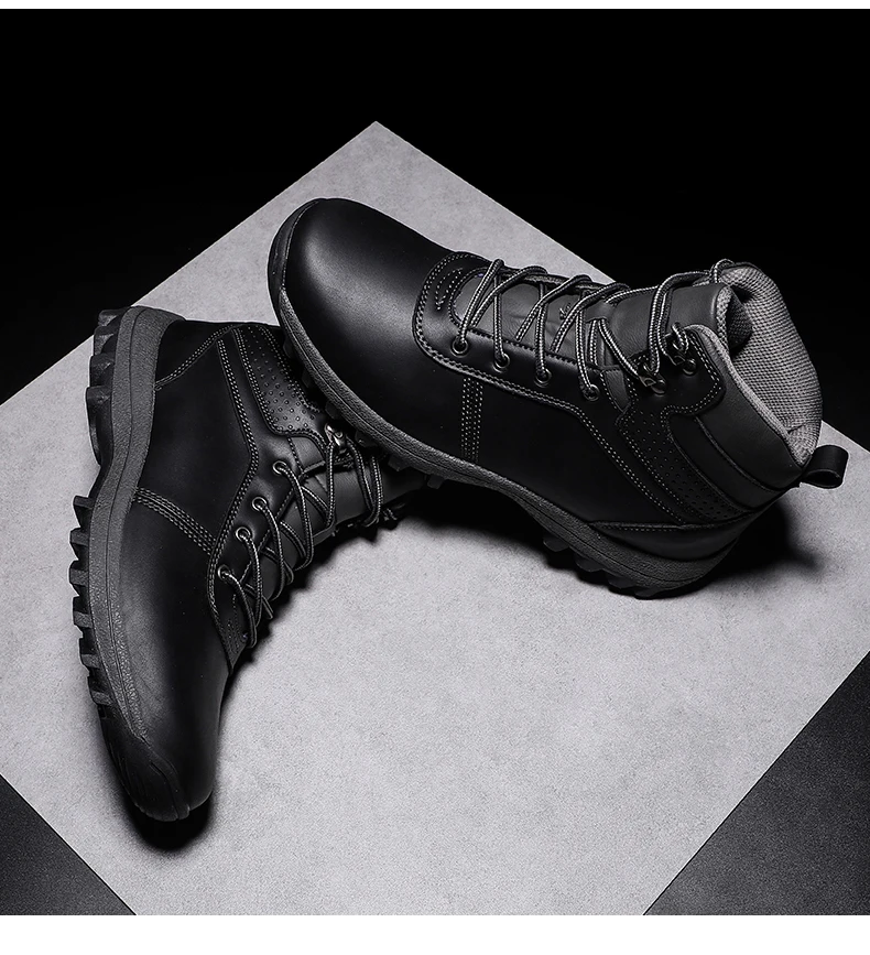 2024 Winter Men Boots Luxury Leather Plush Sneakers Climbing Hunting Shoes Waterproof Non-slip Outdoor Hiking Snow Ankle Boots