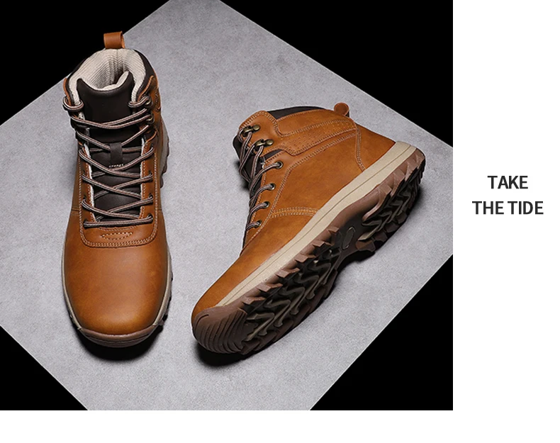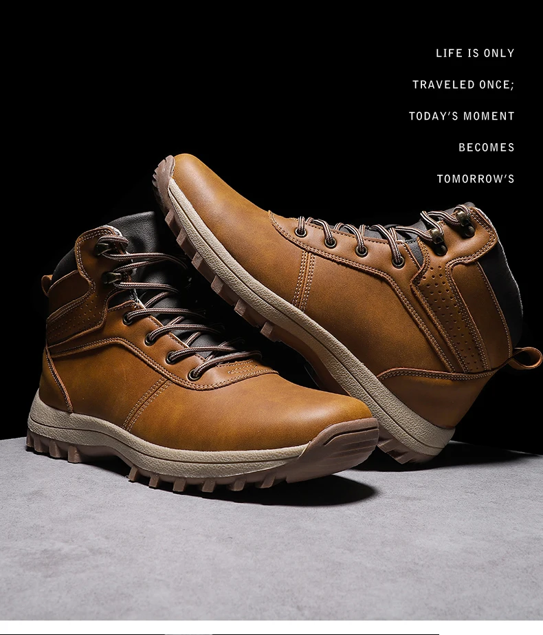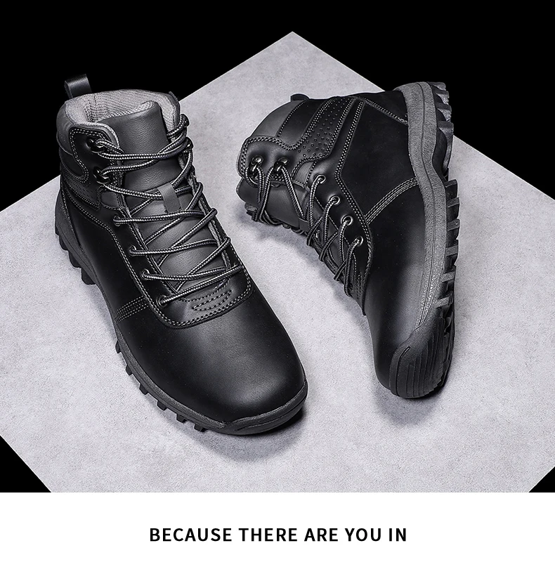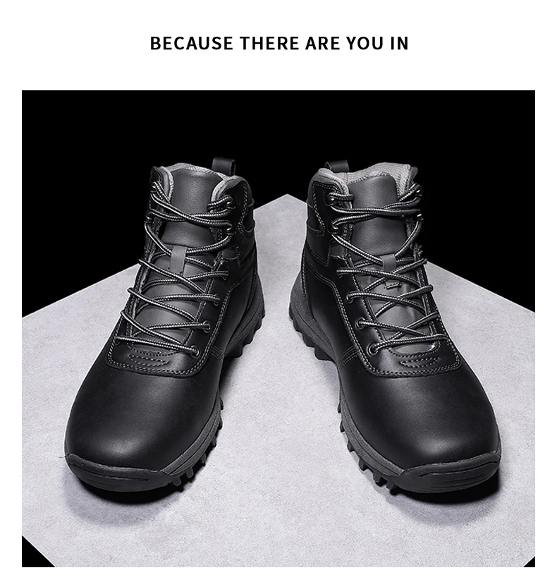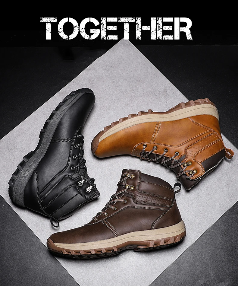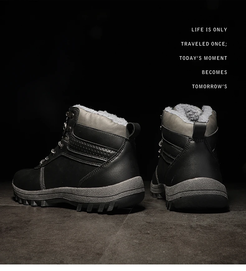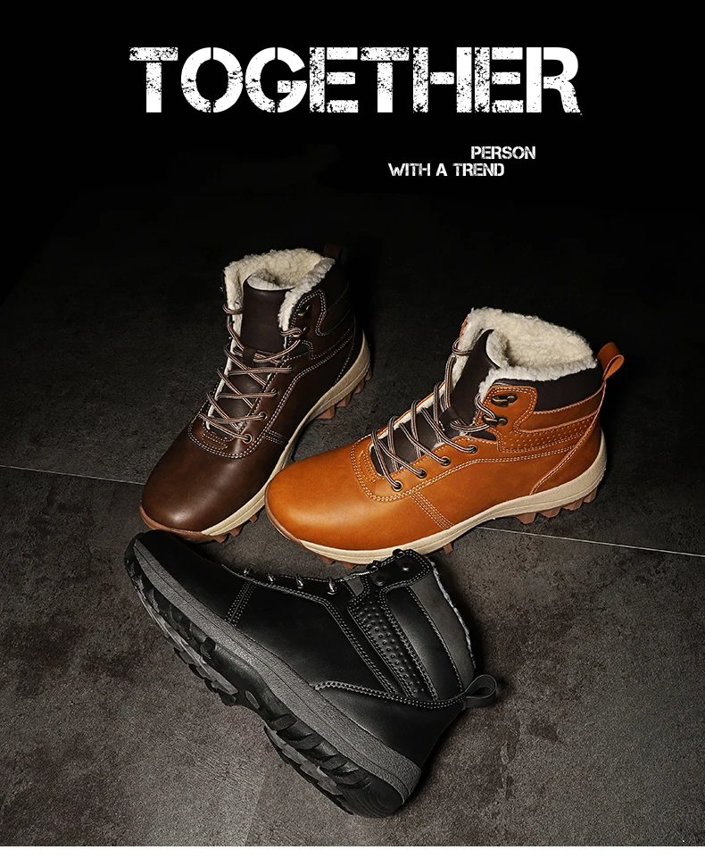 2024 Winter Men Boots Luxury Leather Plush Sneakers Climbing Hunting Shoes Waterproof Non-slip Outdoor Hiking Snow Ankle Boots