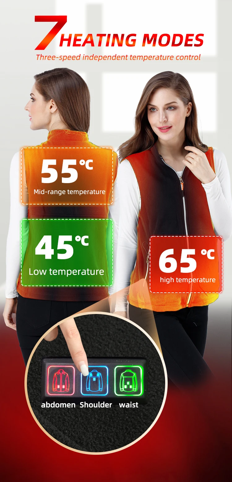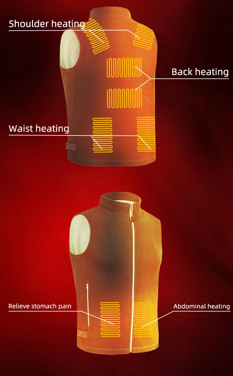 【8 Heating Zones】The heated vest has Eight heating zones to make your body warm; Built-in Eight carbon fiber heating elements generate heat across core body areas include left and right abdomen, back,and waist; Besides, heat spreads from the waist, abdomen, and the back to the entire upper body to make you warmer and warmer