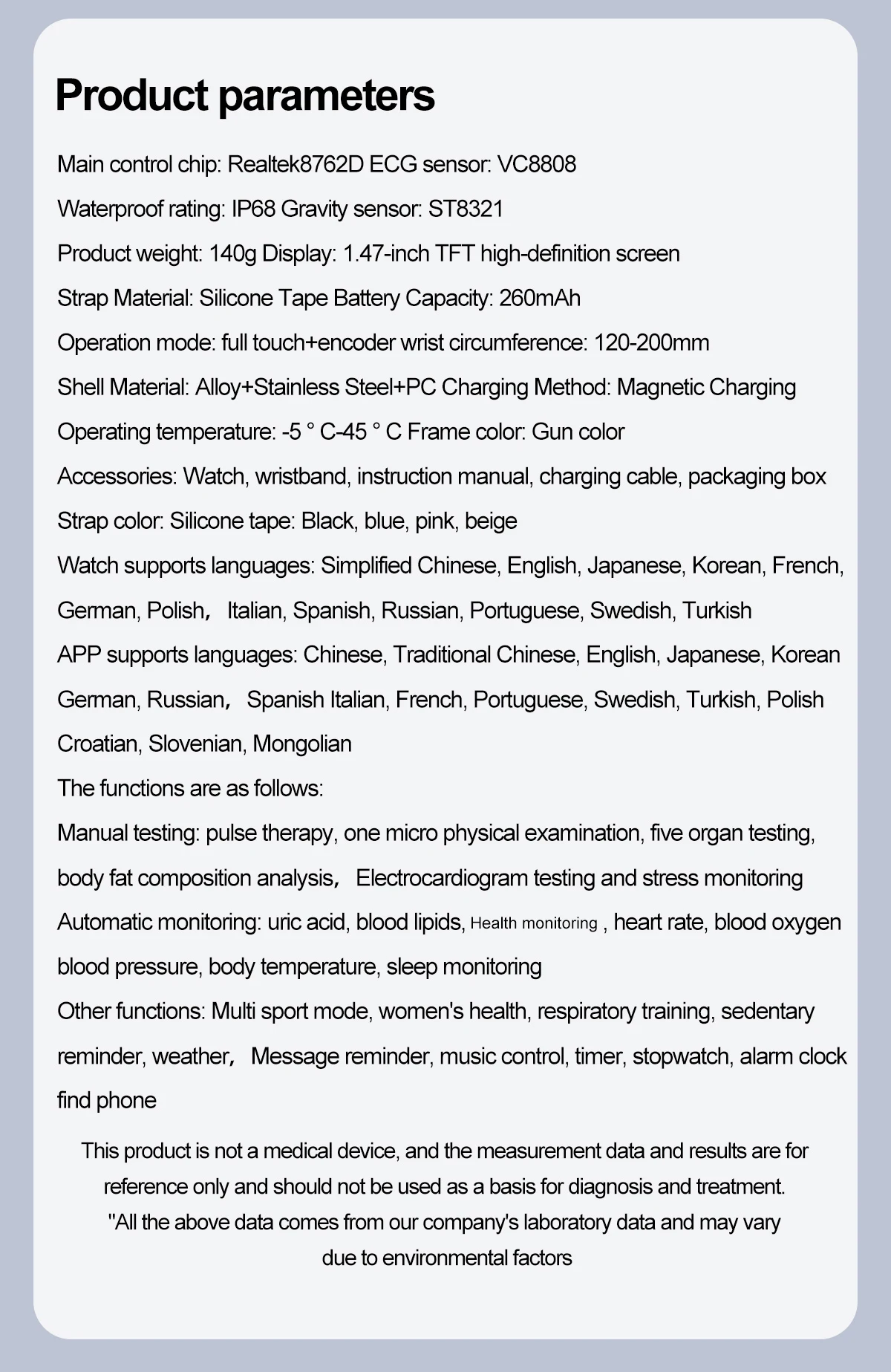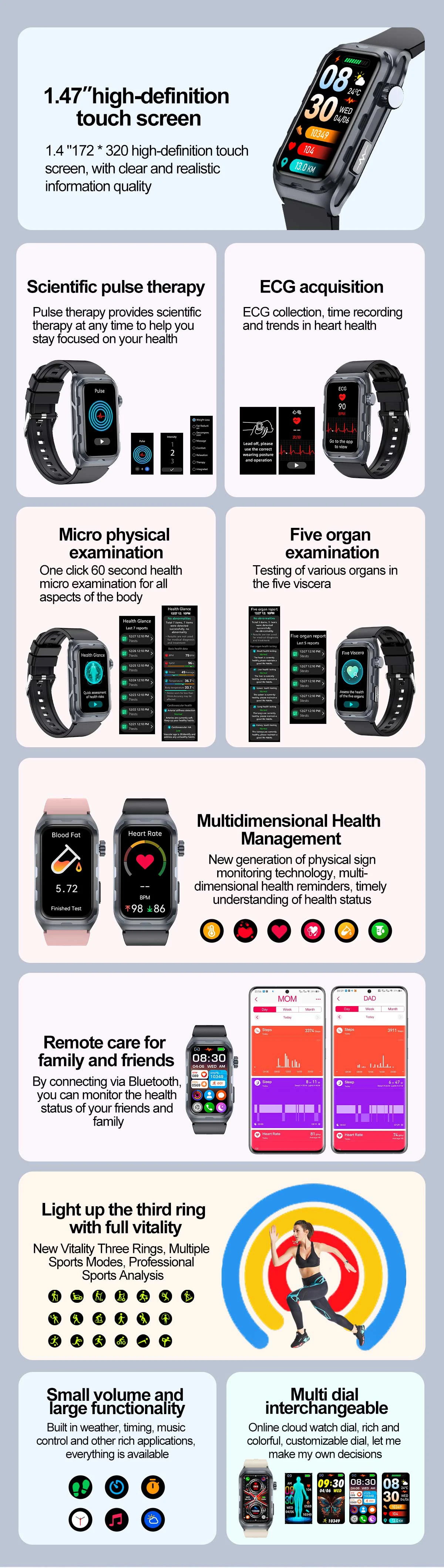 2025 New Nursing Grade ECG+PPG Pulse therapy Smartwatch Men Blood lipid Uric acid Bluetooth call Health Bracelet For Android iOS