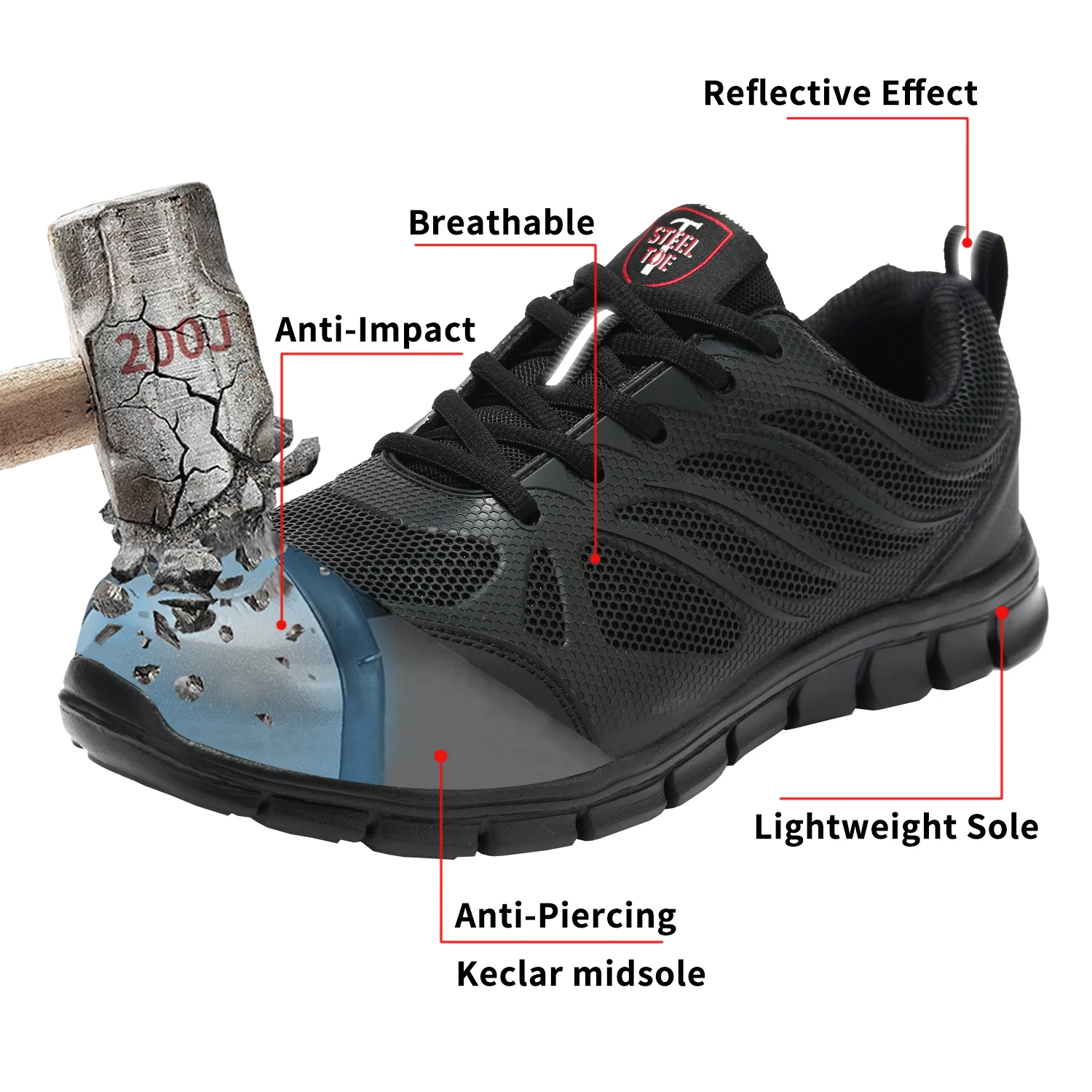 2025 New Work Sneakers Steel Toe Boots Women Men Safety Shoes Anti puncture Breathable Lightweight Suitable for Outdoor Work