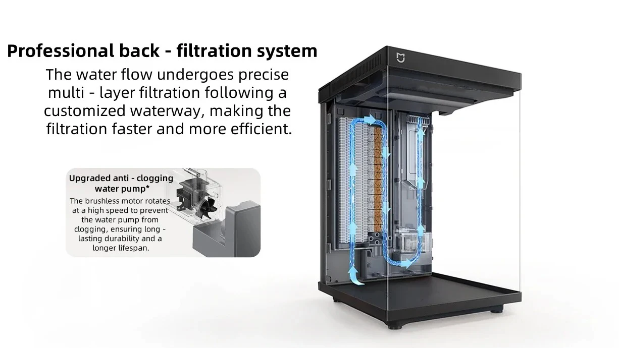 The enclosed body design prevents cats and dogs from jumping into the fish tank to play with water.