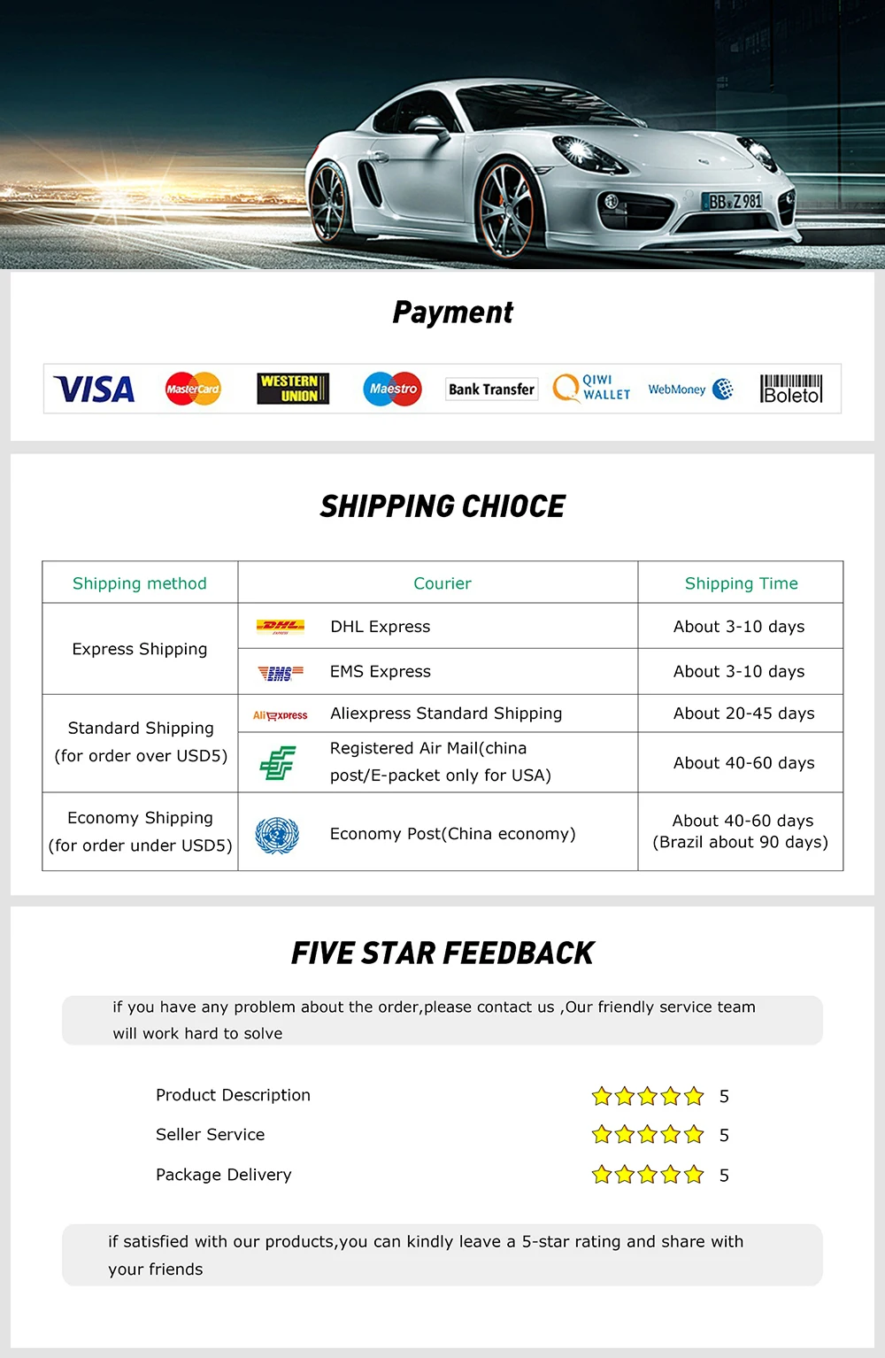 - Trustworthy payment method: We partner with the most popular online payment solutions that guarantee enhanced security and fast transaction processing