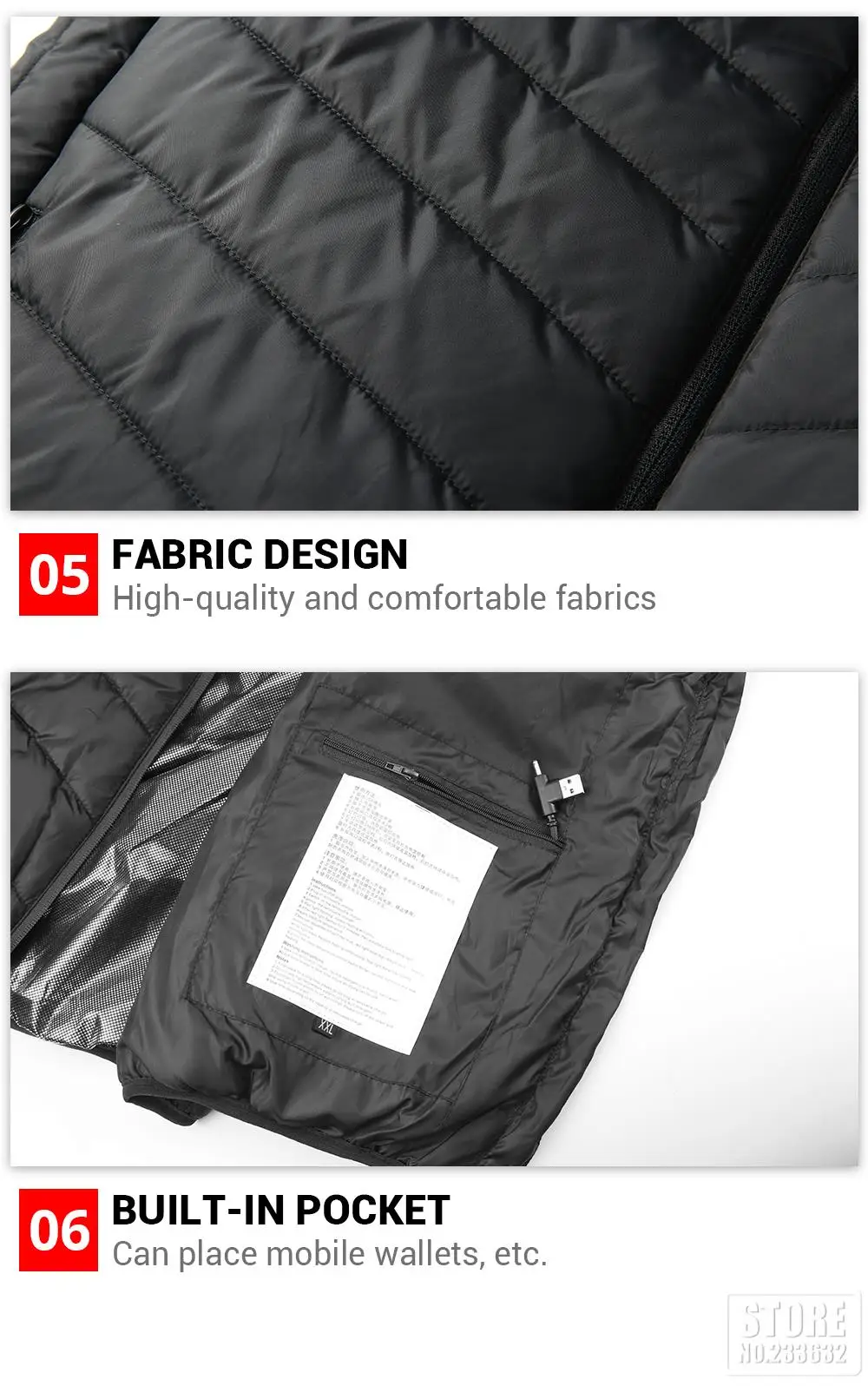 21 Areas Heated Vest Hunting Skiing Heated Jacket Men Cycling Frost Jacket USB Powered Winter Heated Jacket Padded