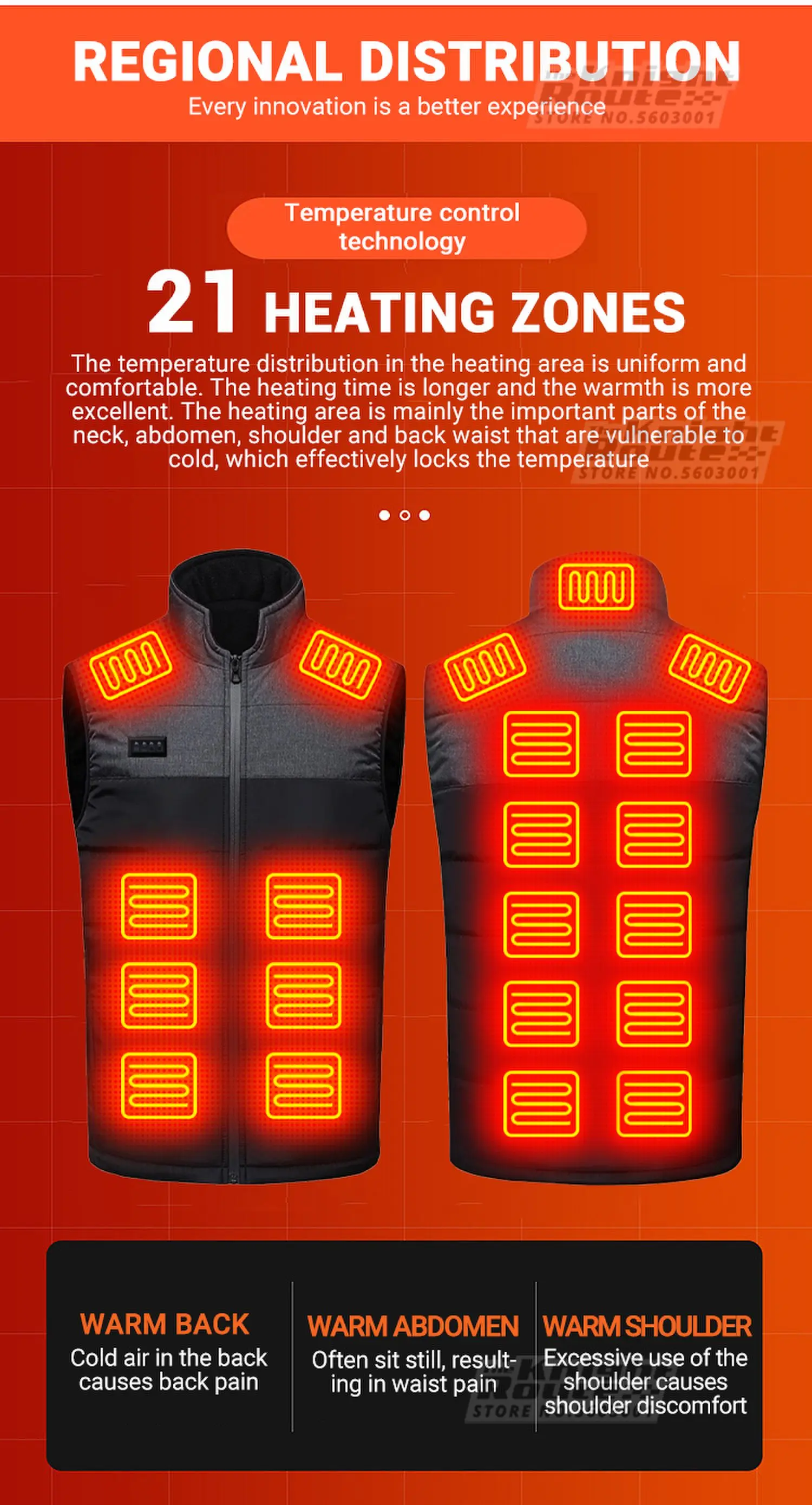 21 Areas Heated Vest Men Jacket Heated Winter Womens Electric Usb Heater Jacket Man Thermal Body Warmer Coat Vest 6XL