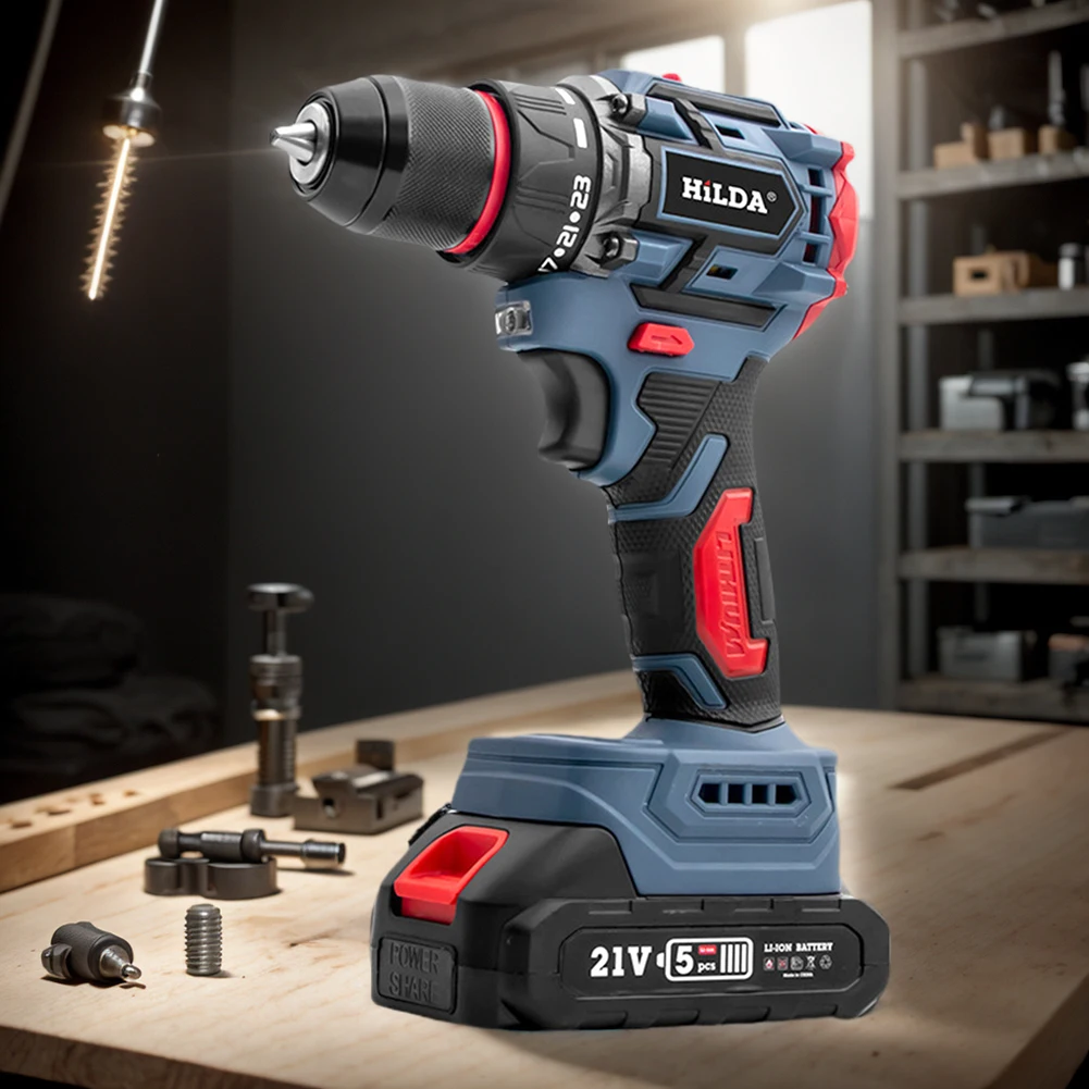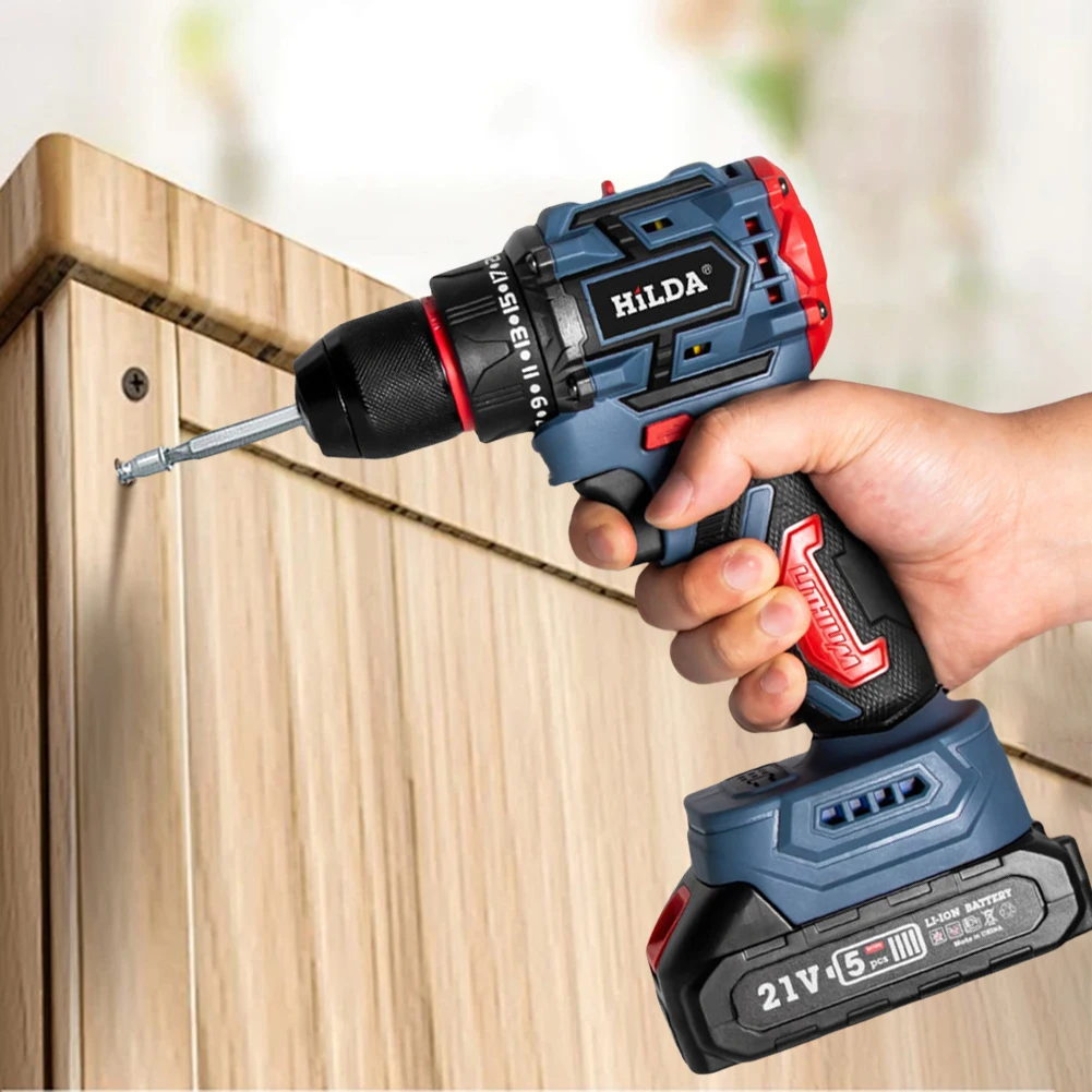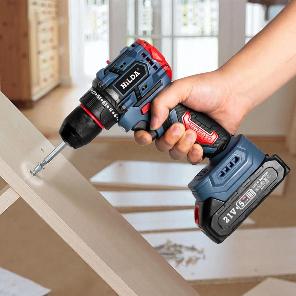 21V 2 in 1 Lithium Drill Electric Screwdriver 40N.M Torque Cordless Electric Drill Screw Driver Brushless Motor Rechargeable 2-Speeds 23 Torque Settings Electric Tool Feature: 1. Powerful Brushless Motor: The 2 in 1 lithium drill electric screwdriver features a robust brushless motor with an impressive maximum power of up to 500W, ensuring efficient performance for all your drilling and screwing tasks. 2. Long-Lasting Battery Life: Equipped with a high-capacity lithium battery, the cordless electric drill screw driver offers extended runtime, allowing you to complete your projects without frequent recharging interruptions. 3. High Torque with Adjustable Settings: The practical screw driver boasts an exceptional maximum torque of up to 40N.M, with 23 adjustable torque settings, providing precise control for various applications. 4. High-Speed Performance: The hand drill screwdriver delivers a high rotation speed of up to 1650rpm, making it ideal for quick and efficient drilling and screwing tasks. 5. Built-in LED Light and Ergonomic Design: The multi-function electric screwdriver comes with an integrated LED light, ensuring visibility in dark spaces. Its ergonomic grip design offers comfort, reducing fatigue during prolonged use. Specification: