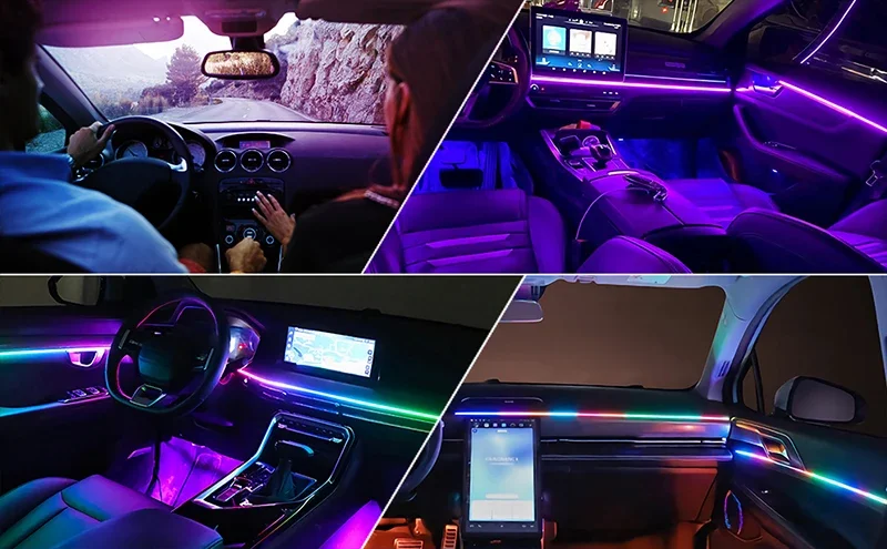 The car LED strip lights are equipped with wireless app control, allowing you to conveniently turn lights on/off, adjust the lighting effects, colors, timing, and brightness through your smartphone. This wireless control feature adds convenience and ensure your safety when driving.