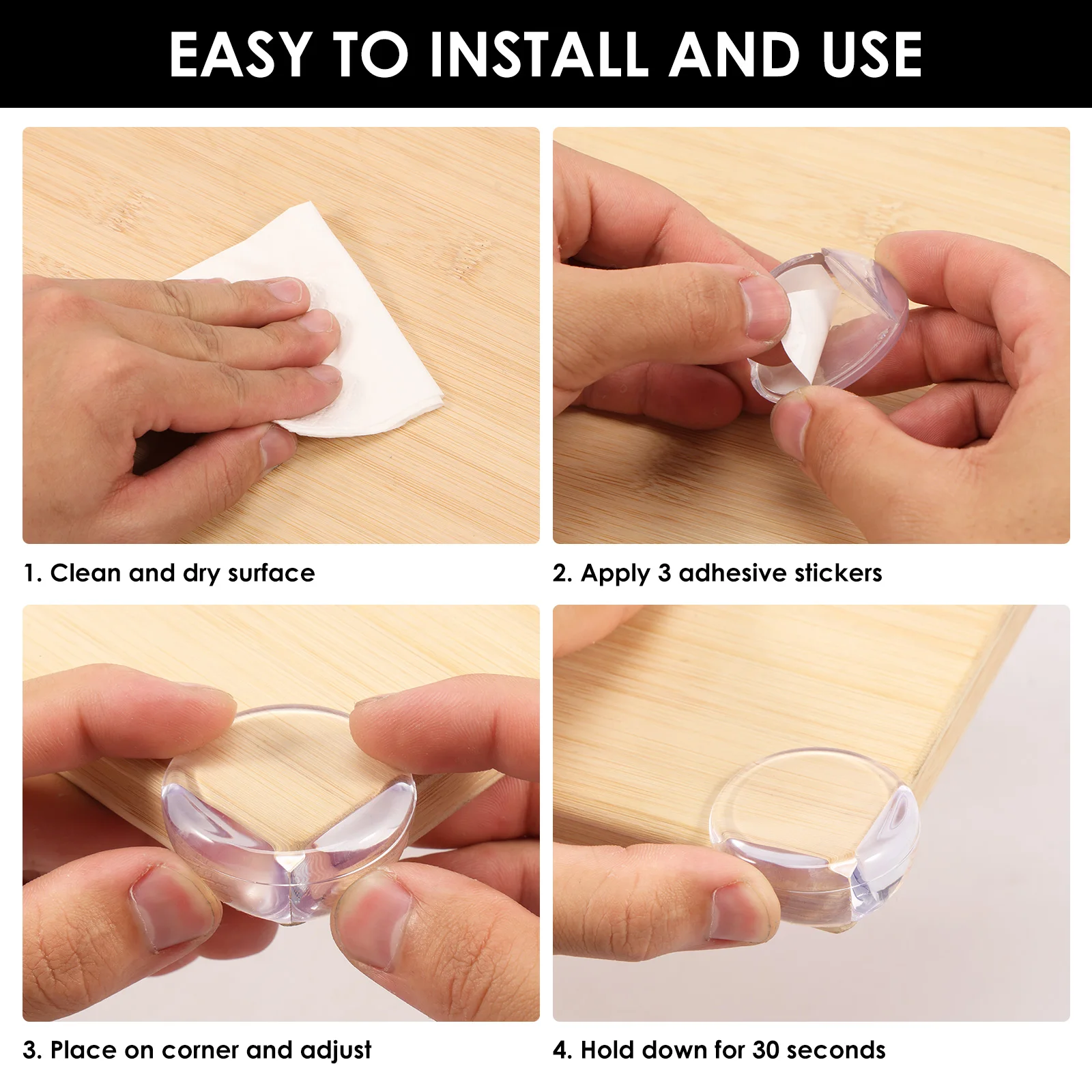 Easy Installation:Our corner protectors come with upgraded adhesive. You only need to clean the surface, peel off the protective paper inside the corner protector, and then press this protector onto the corners of the table.