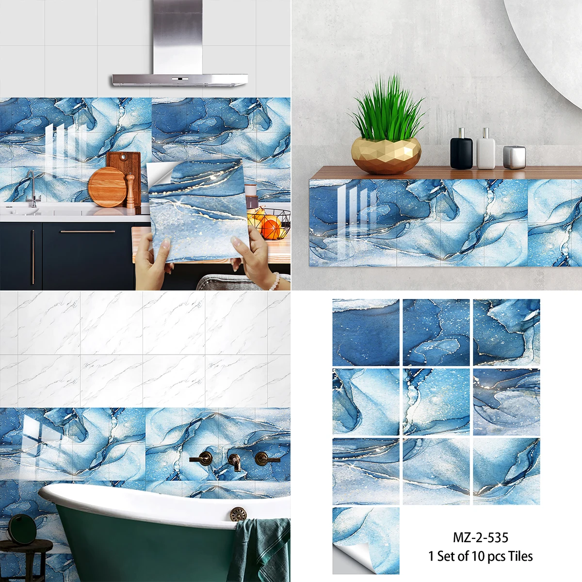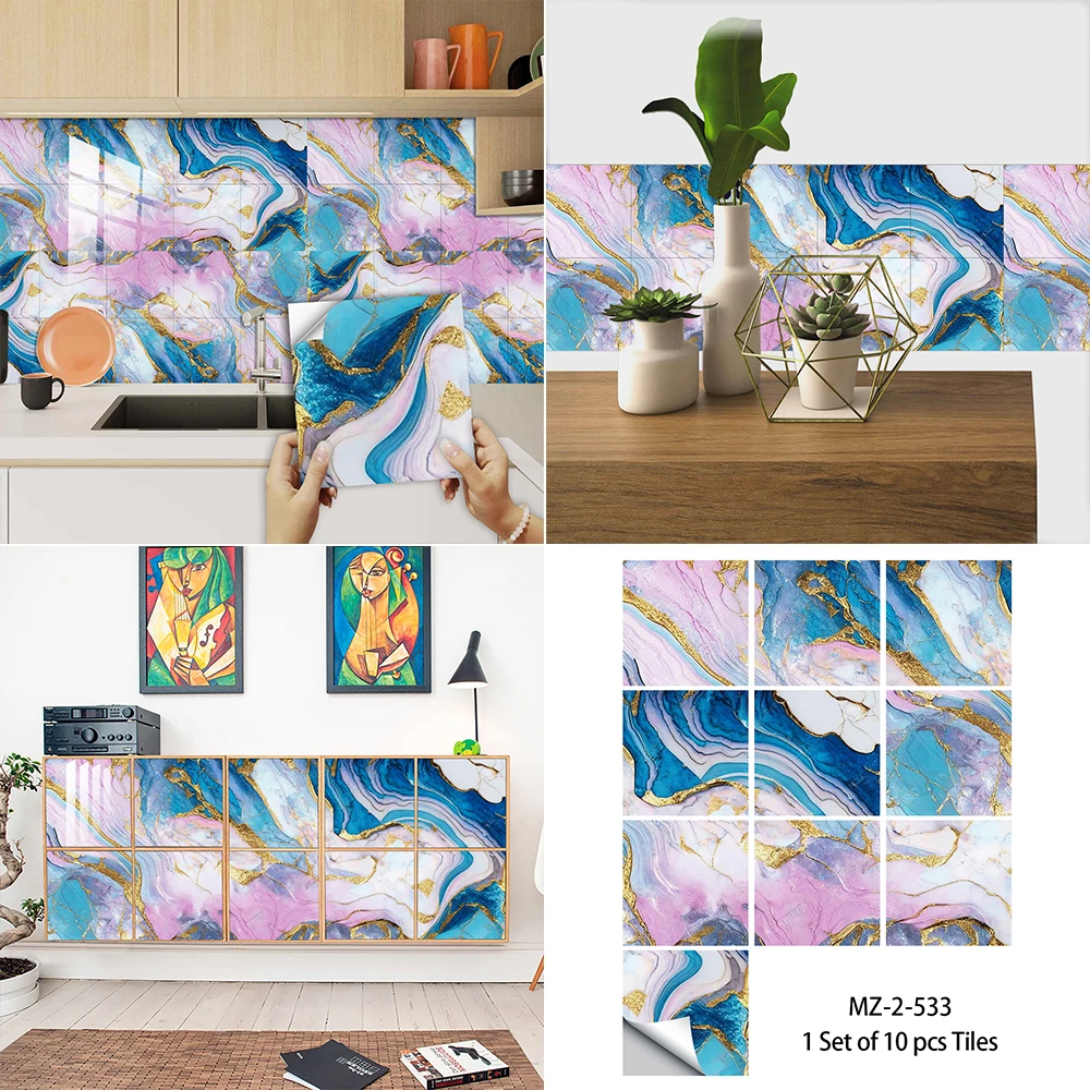 25 styles 10pcs/set Tiles Sticker Kitchen Backsplash Oil-proof Bathroom Decals Peel & Stick Waterproof Art Wallpaper
