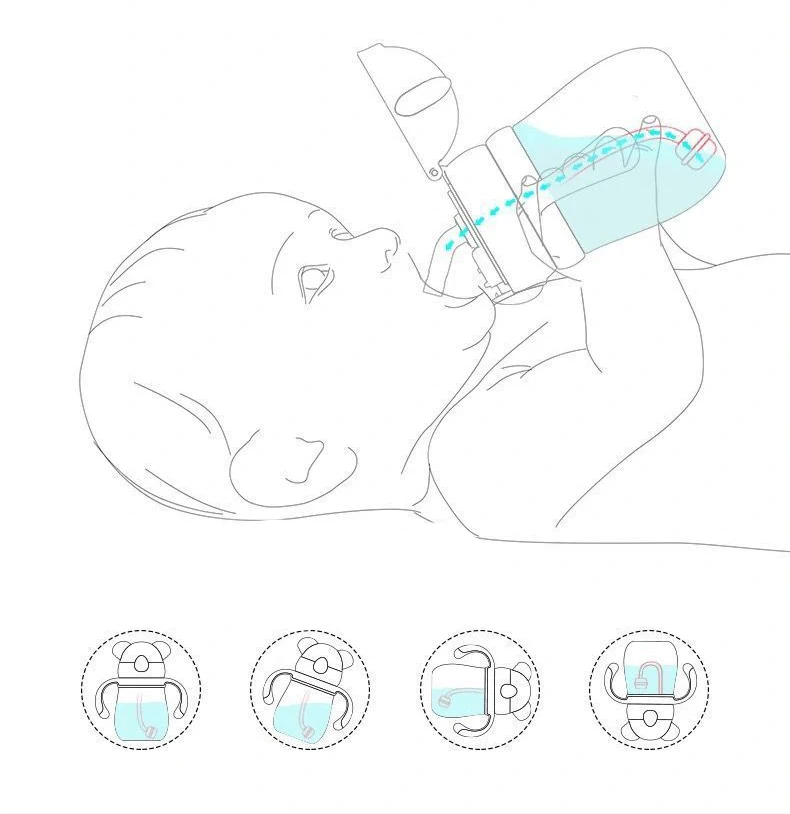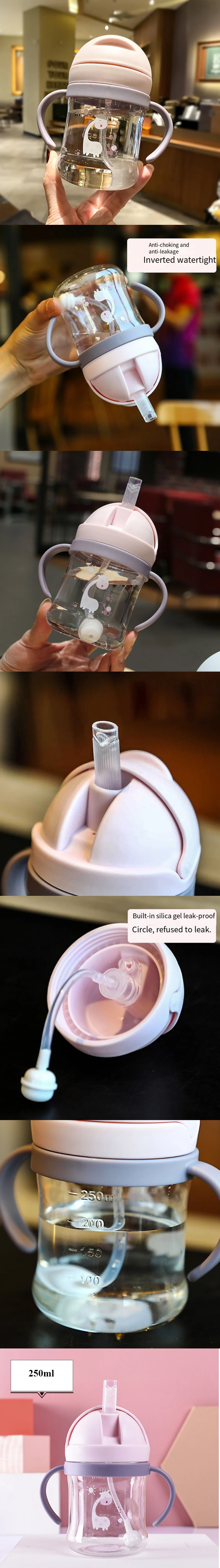 250ml Pink Baby Drinking Cup Feeding Bottle With Straw Gravity Ball Wide-Caliber Drinking Milk Water Bottle With Handle