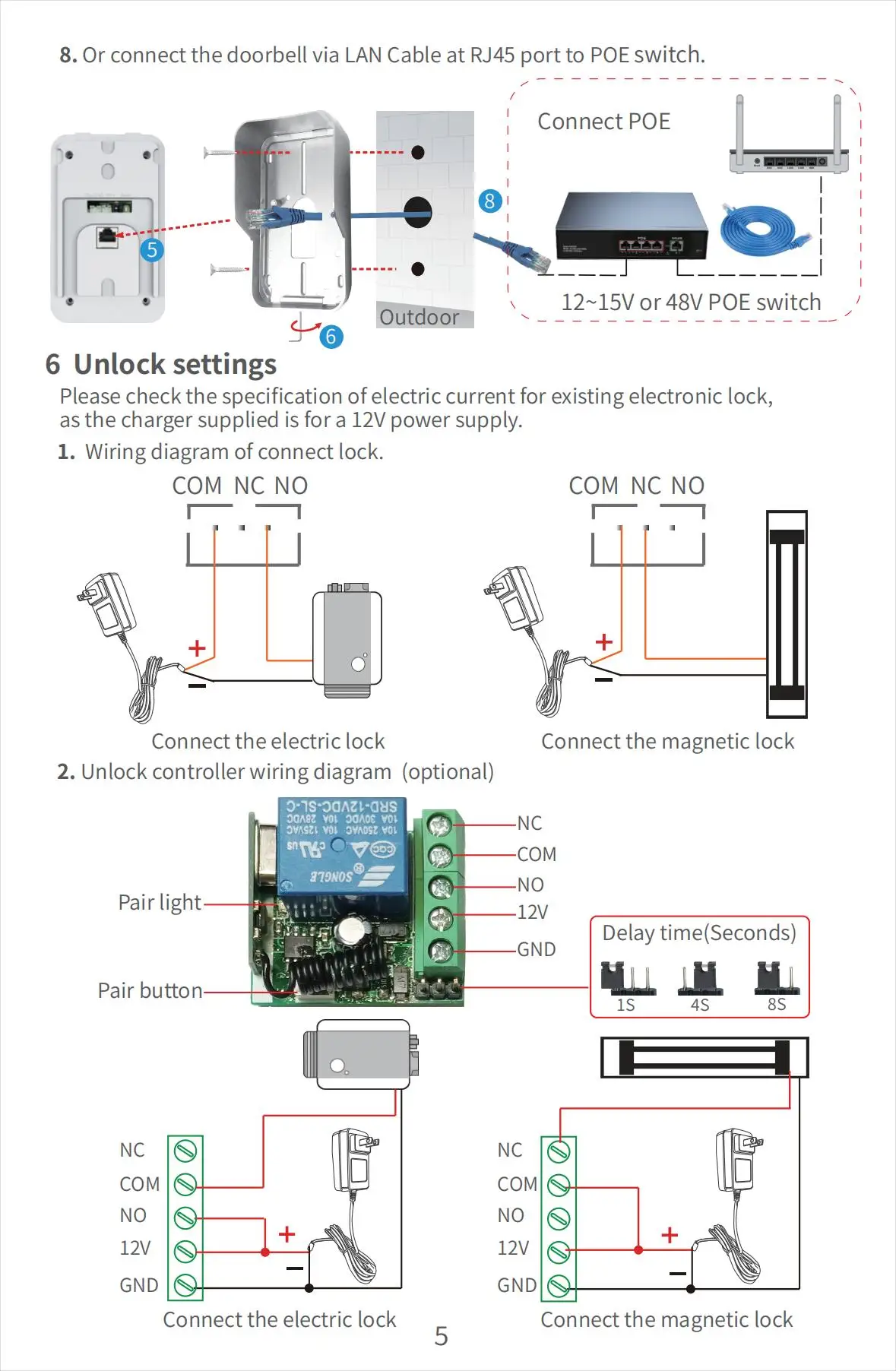 You can choose the suitable method according to the installation distance and network signal strength. Either way, the data transmission is guaranteed to be stable.Can be connected to all 12V electronic locks of fence gates or front doors.