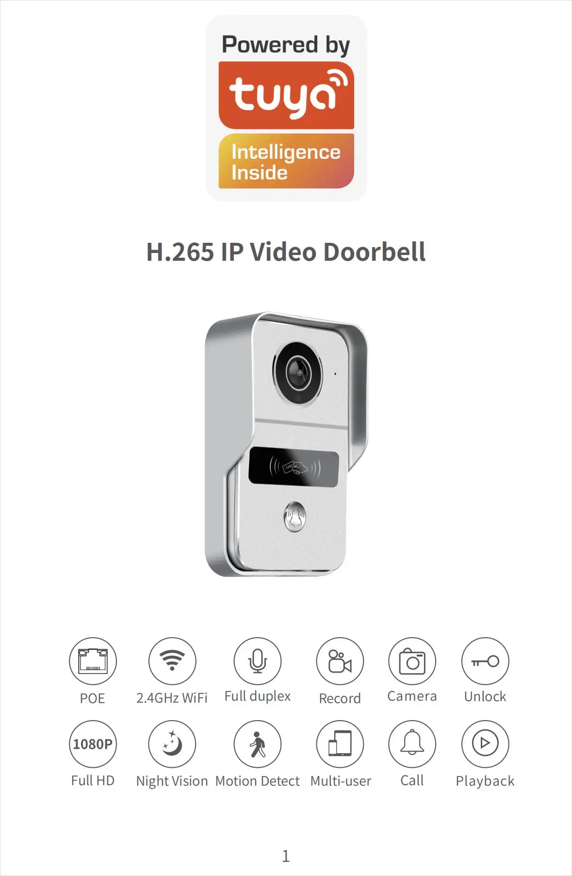 2MP Tuya Doorbell Wifi Video Intercom 1080P Camera Motion Sensor Alarm Security Smart Home/ Office Wireless Remote Unlock
