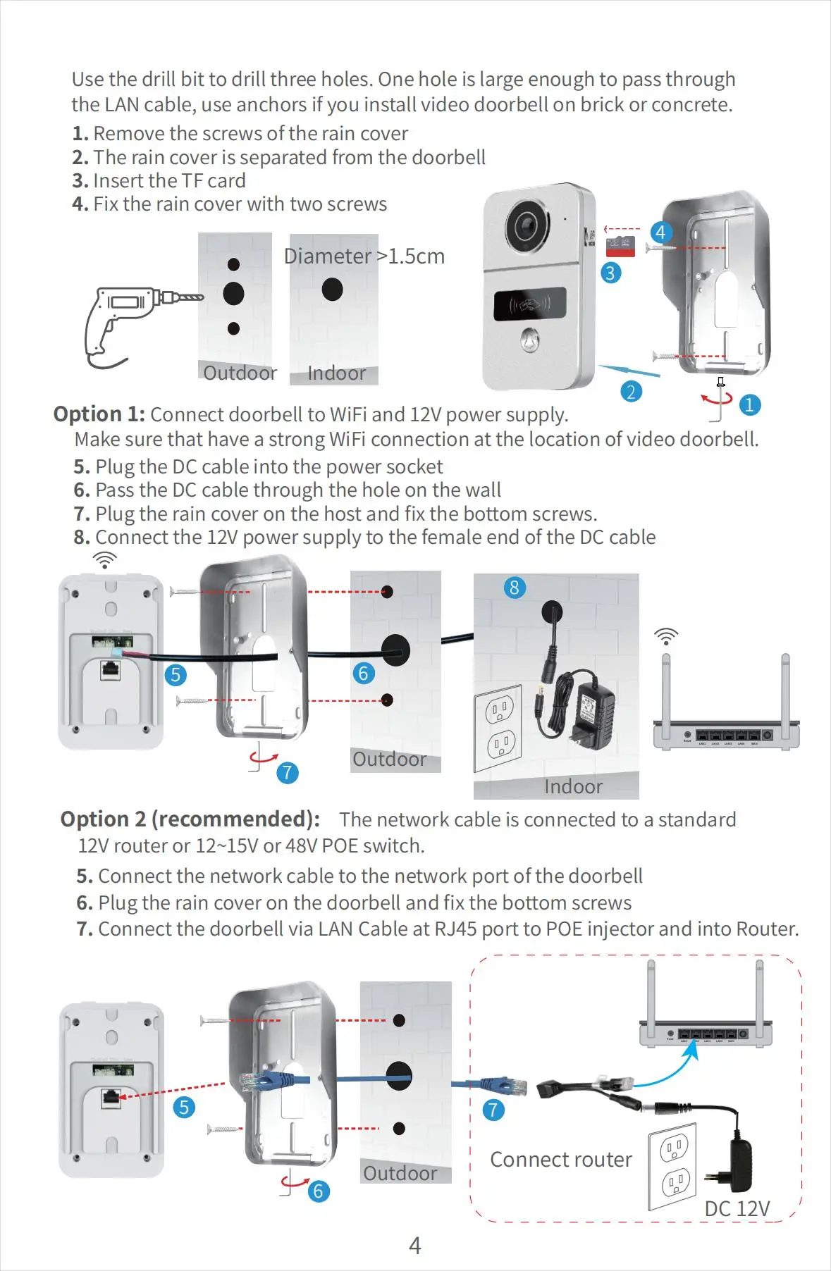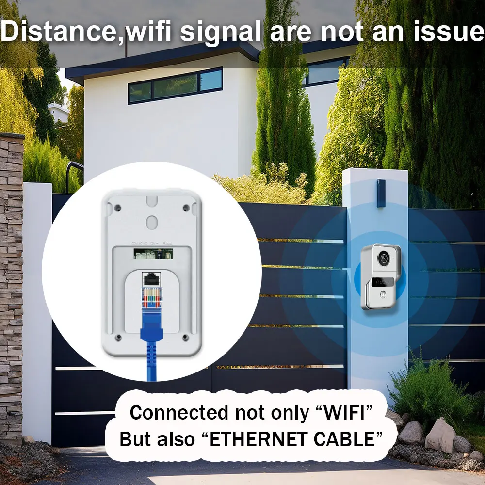 1. Can be powered by a power adapter (included) when connecting the doorbell with WiFi.