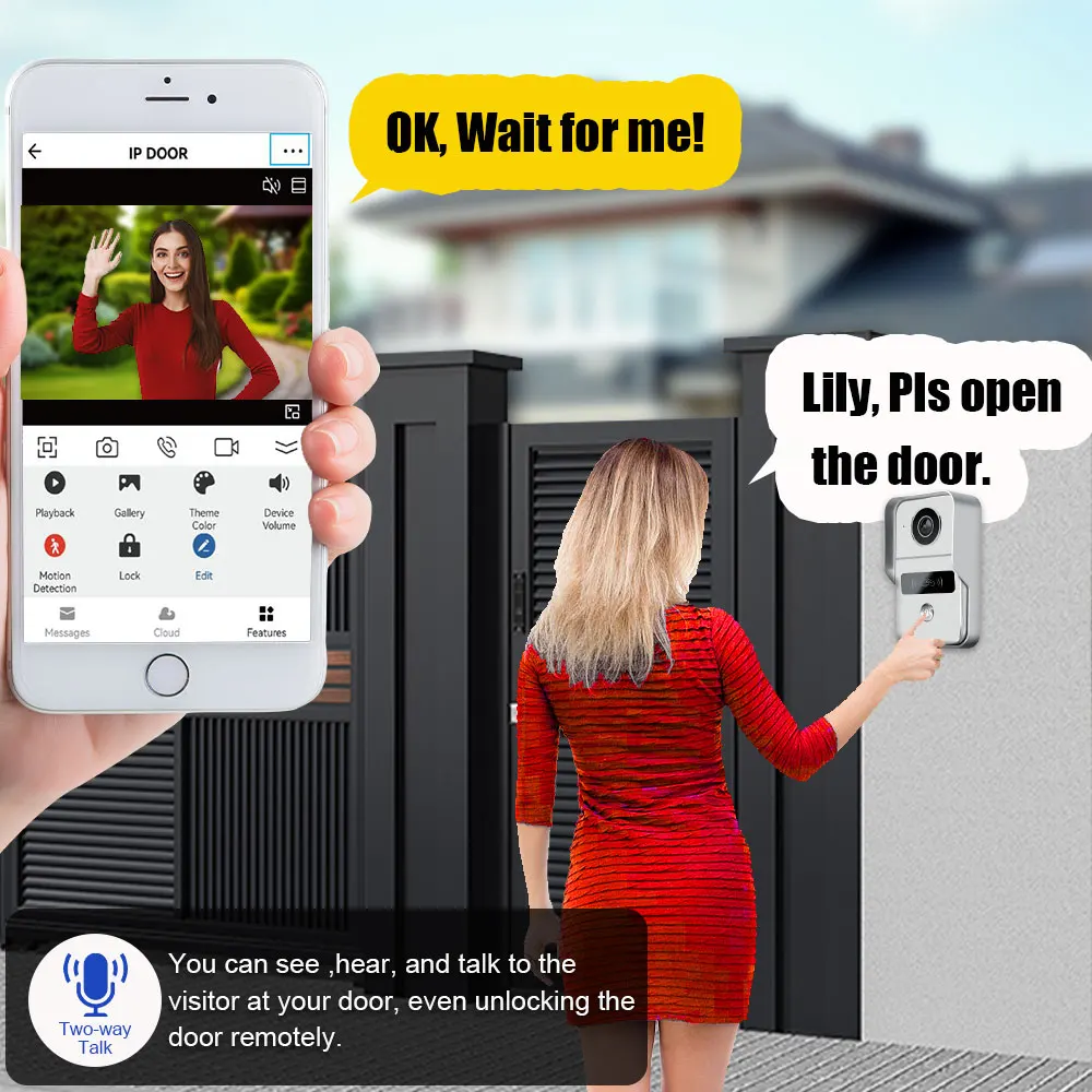 When motion is detected or someone presses, doorbell will be activated records video and sent real-time alert to your phone, you can see, hear and communicate with anyone who at door, even remote unlock.