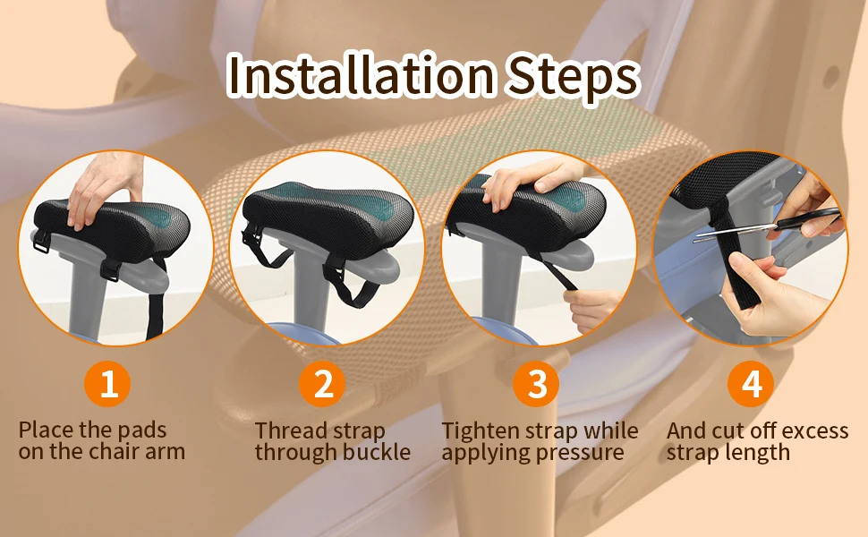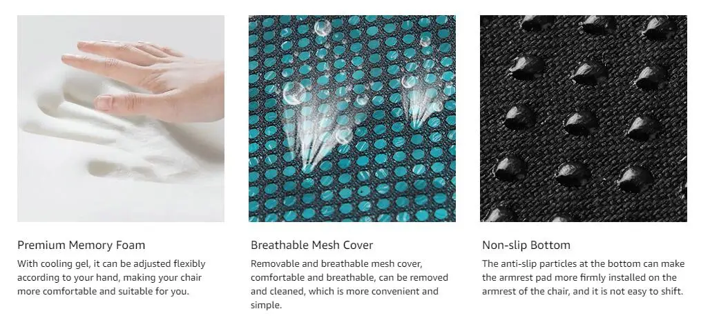 【Breathable and Detachable Mesh Cover】 — Along with the cooling gel pad, our armrest cushions come with breathable mesh covers to release heat. Velcro straps and non-slip particles at bottom enable the chair arm pads to be firmly installed on chairs. Hidden zipper makes mesh cover detachable for easy cleaning and machine washing. The padded armrest acts as office chair armrest covers, protecting your chair from wear and tear. Note: Do not put memory foam cushions in the washer or dryer.